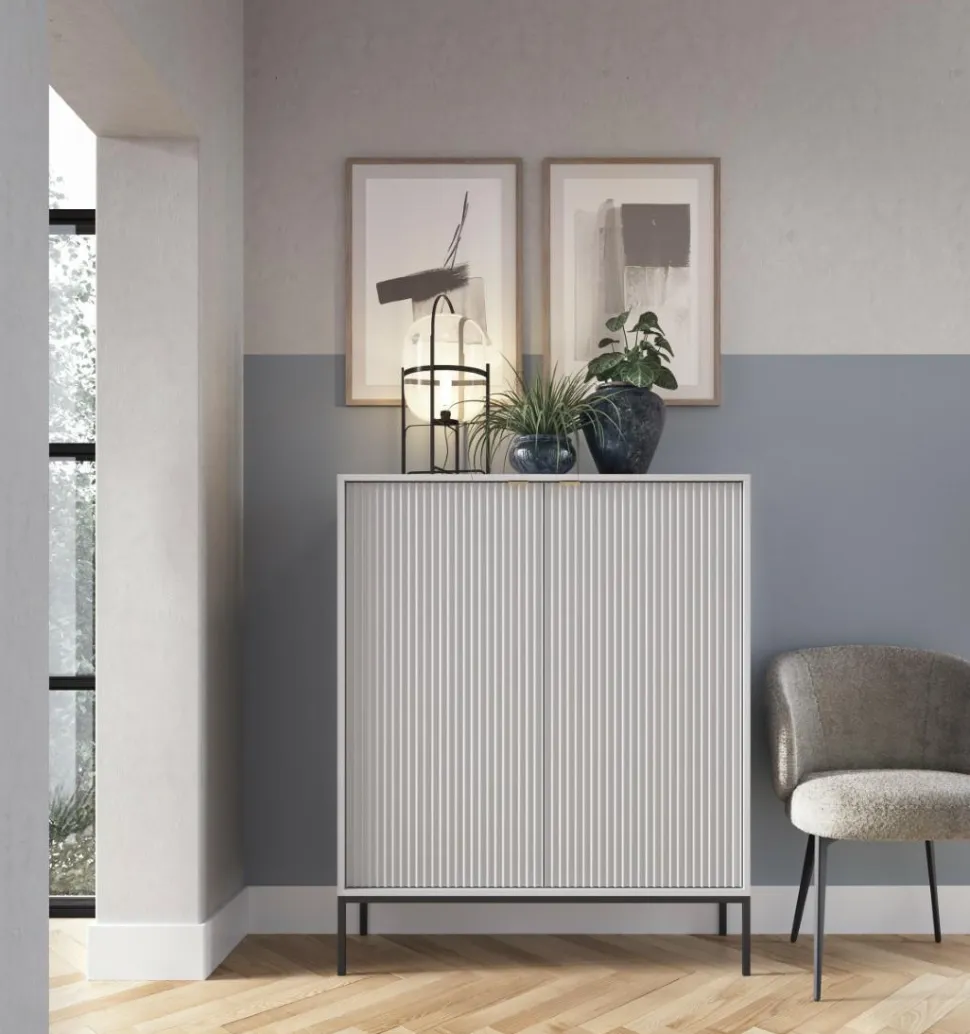 Dodaj odrobinę uroku do swojego domu dzięki ryflowanej komodzie Delicious od Intesi. Stylowy mebel posiadaaluminiowe uchwytyw złotym kolorze oraz2szafkii6półek, które zaspokoją wszystkie potrzeby związane z przechowywaniem. Ponadto metalowa podstawa zapewnia stabilność, a delikatna konstrukcja dodaje wizualnej lekkości – idealna do małych przestrzeni!