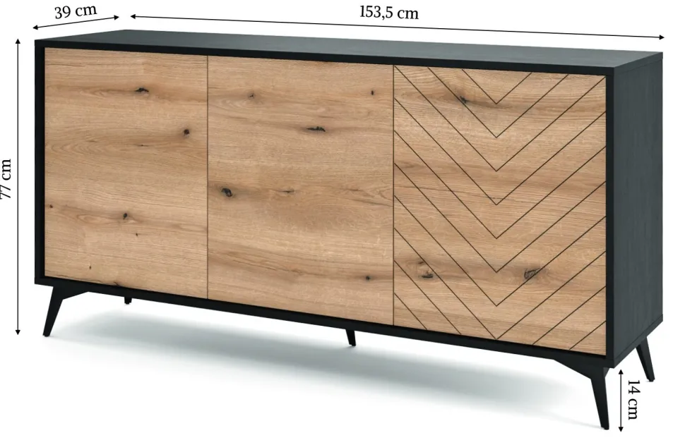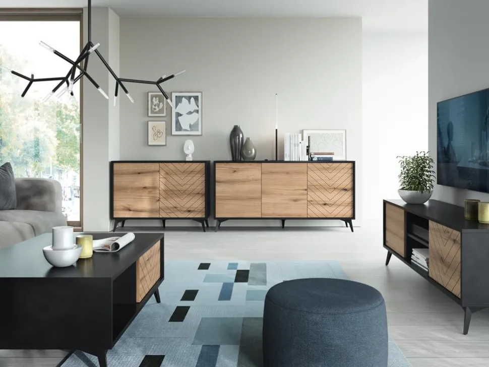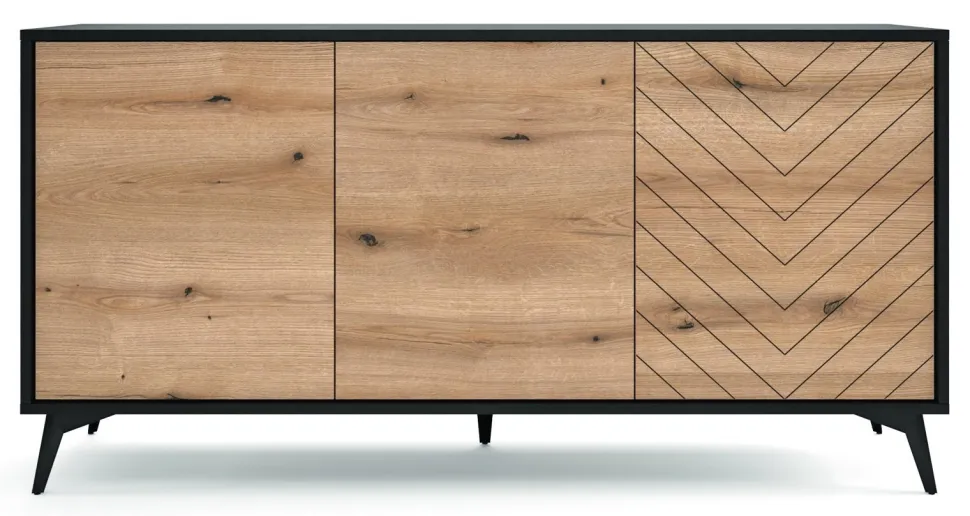 Styl nowoczesny to przede wszystkim zasada „mniej znaczy więcej”. Wnętrza w stylu nowoczesnym charakteryzuje równowaga, prpraktyczność i prosta elegancja, która znajduje swoje odbicie w wystroju, jednolitej kolorystyce oraz braku zbędnych dodatków. Wnętrza w stylu nowoczesnym rezygnują ze wszystkiego, co niepotrzebne i skupiają się na esencji pomieszczenia. W sytuacji, gdy ilość mebli ograniczona jest do potrzebnego minimum, muszą być one zarówno funkcjonalne, jak i piękne. Efektowny wygląd komód w stylu nowoczesnym zapewnia geometryczna forma o solidnym wykonaniu. To właśnie w nowoczesnym stylu została zrobiona Komoda Fargo duża w jodełkę. Brązowy i czarny kolor produktu sprawia, że komoda dopasuje się do wnętrz nie tylko w nowoczesnym stylu, ale też do tych w loftowym stylu.