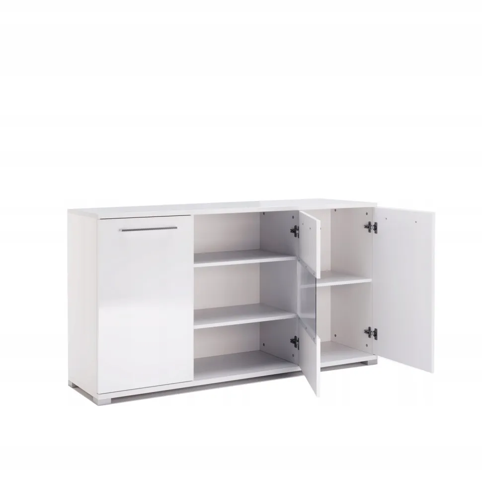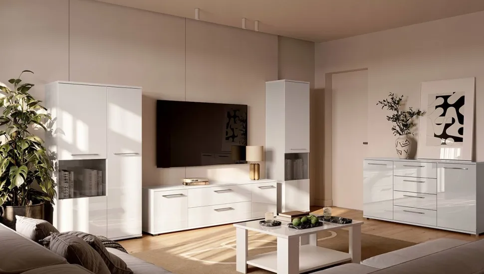 Komoda Flory 150cm w białym połysku to nie tylko mebel, to kluczowy element wyposażenia salonu, który harmonijnie łączy w sobie praktyczność i estetykę. Wspiera organizację przestrzeni, zapewniając jednocześnie miejsce na przechowywanie codziennych przedmiotów, takich jak ubrania czy czasopisma.