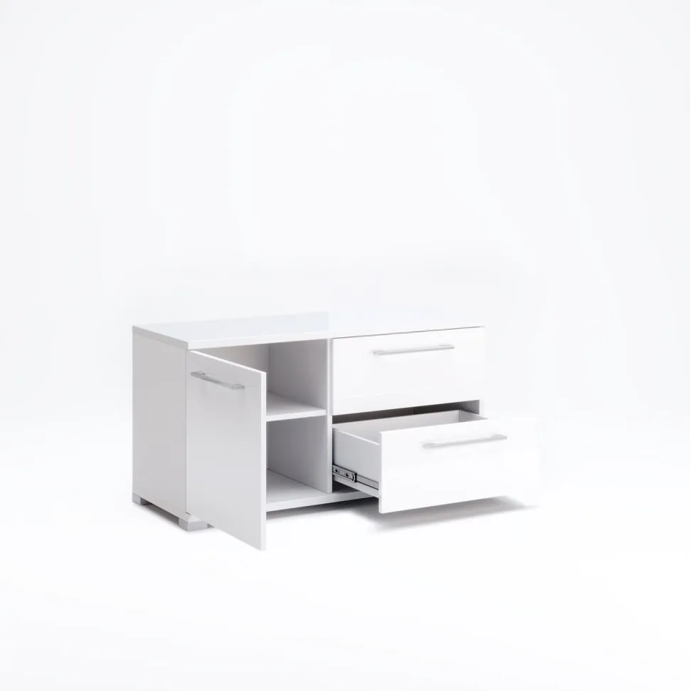 Komoda Flory 100cm w białym połysku to nie tylko mebel,to kluczowy element wyposażenia salonu, który harmonijnie łączy w sobie praktyczność i estetykę. Wspiera organizację przestrzeni, zapewniając jednocześnie miejsce na przechowywanie codziennych przedmiotów, takich jak ubrania czy czasopisma.