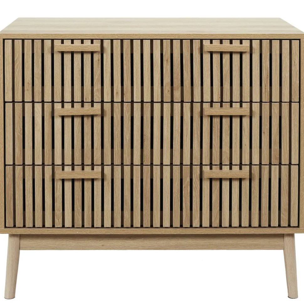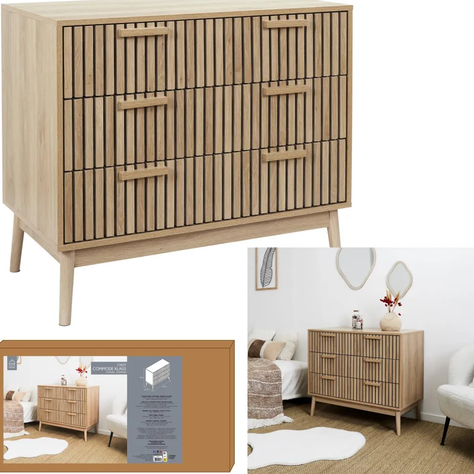 Trzy przestronne szuflady komody Klaus umożliwiają przechowywanie różnego rodzaju przedmiotów, od dokumentów po tekstylia. Dzięki temu, komoda ta jest nie tylko eleganckim dodatkiem do wnętrza, ale także praktycznym rozwiązaniem do przechowywania.