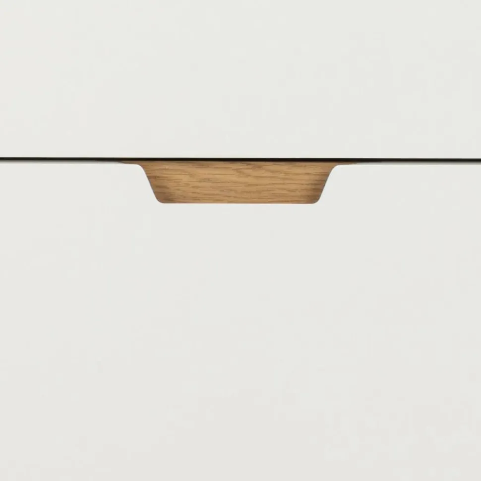Wysoka jakość użytych materiałów gwarantuje trwałość i solidność mebla. Korpus i szuflady wykonane są z płyty MDF, natomiast nogi z drewna dębowego. To sprawia, że komoda jest stabilna i wytrzymała. Biel szuflad w połączeniu z naturalnym kolorem dębu to klasyczna i ponadczasowa kolorystyka, która sprawdzi się w każdym wnętrzu.