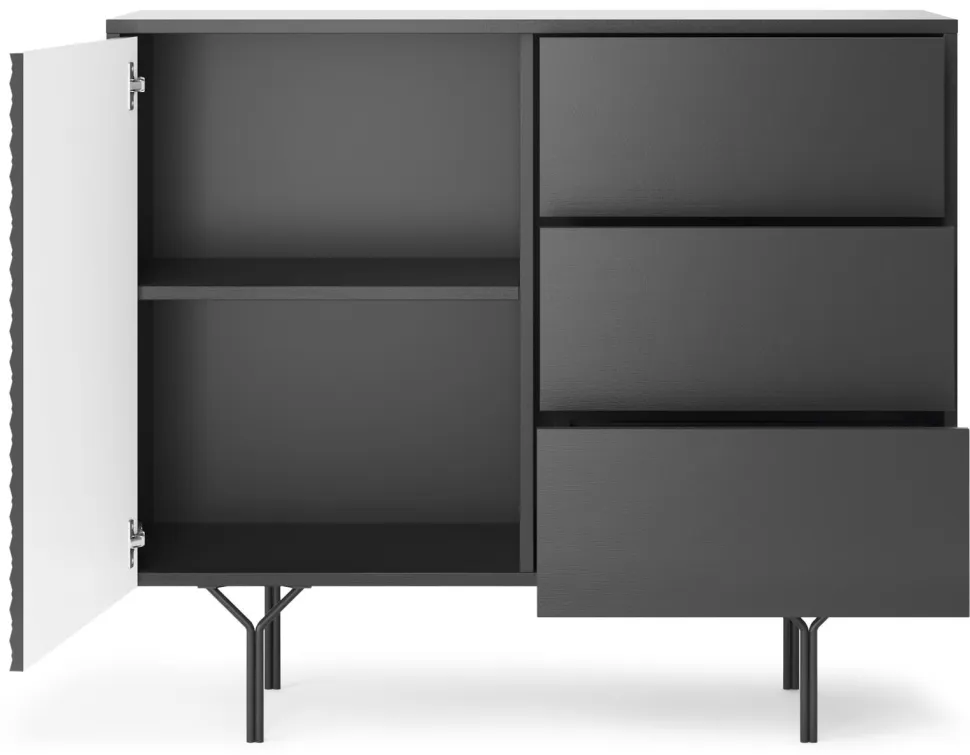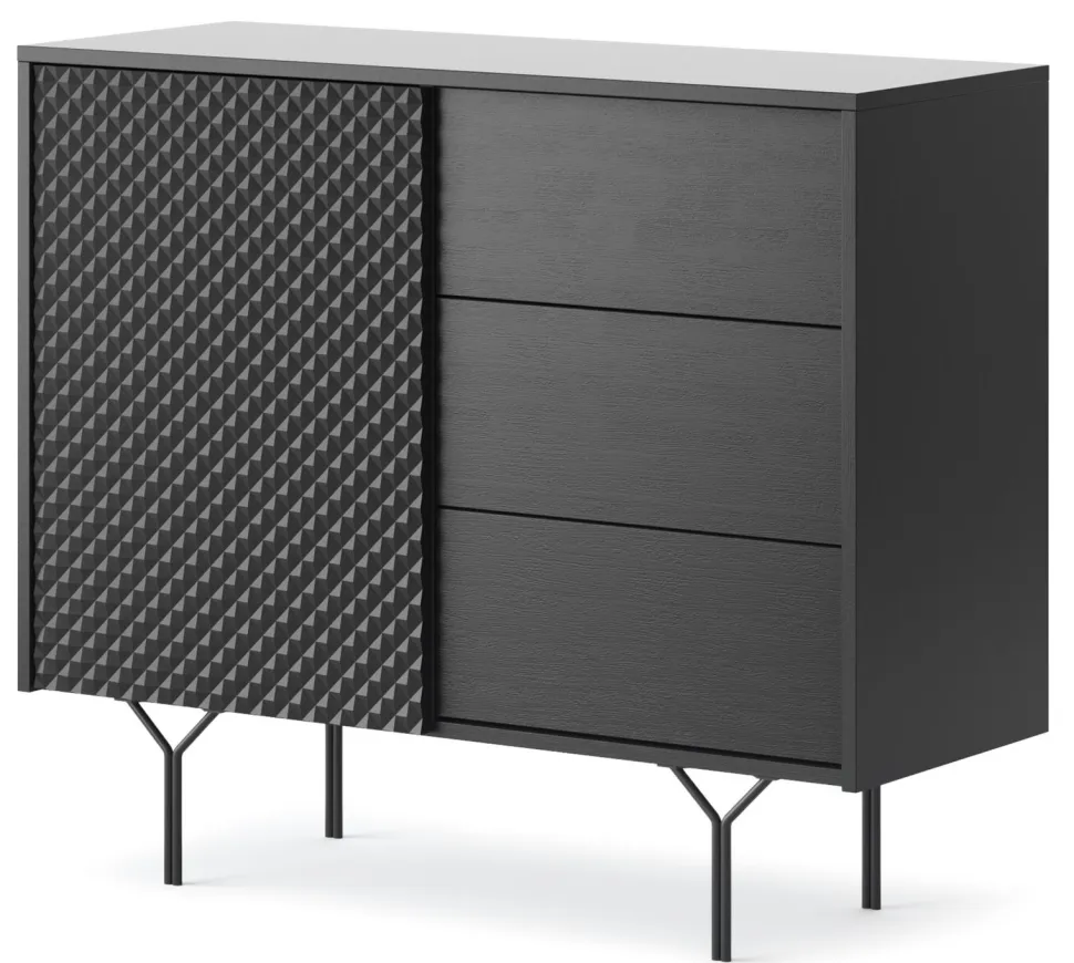 Komoda Navara została wykonana z materiałów najwyższej jakości. Płyta MDF pokryta czarną półmatową okleiną, charakteryzuje się idealną gładkością i jest odporna na wilgoć, zarysowania i wysokie temperatury. Tak samo jak metalowe nogi odpowiednio zabezpieczone przed odpryskiem farby spowodowanym, np. pracą robota sprzątającego. Komoda Navara wykonana jest precyzyjnie zgodnie z najwyższymi standardami, by służyć Ci przez lata! Wszystkie elementy komody do salonu są starannie dopasowane, aby zagwarantować trwałość i bezproblemową eksploatację mebla.