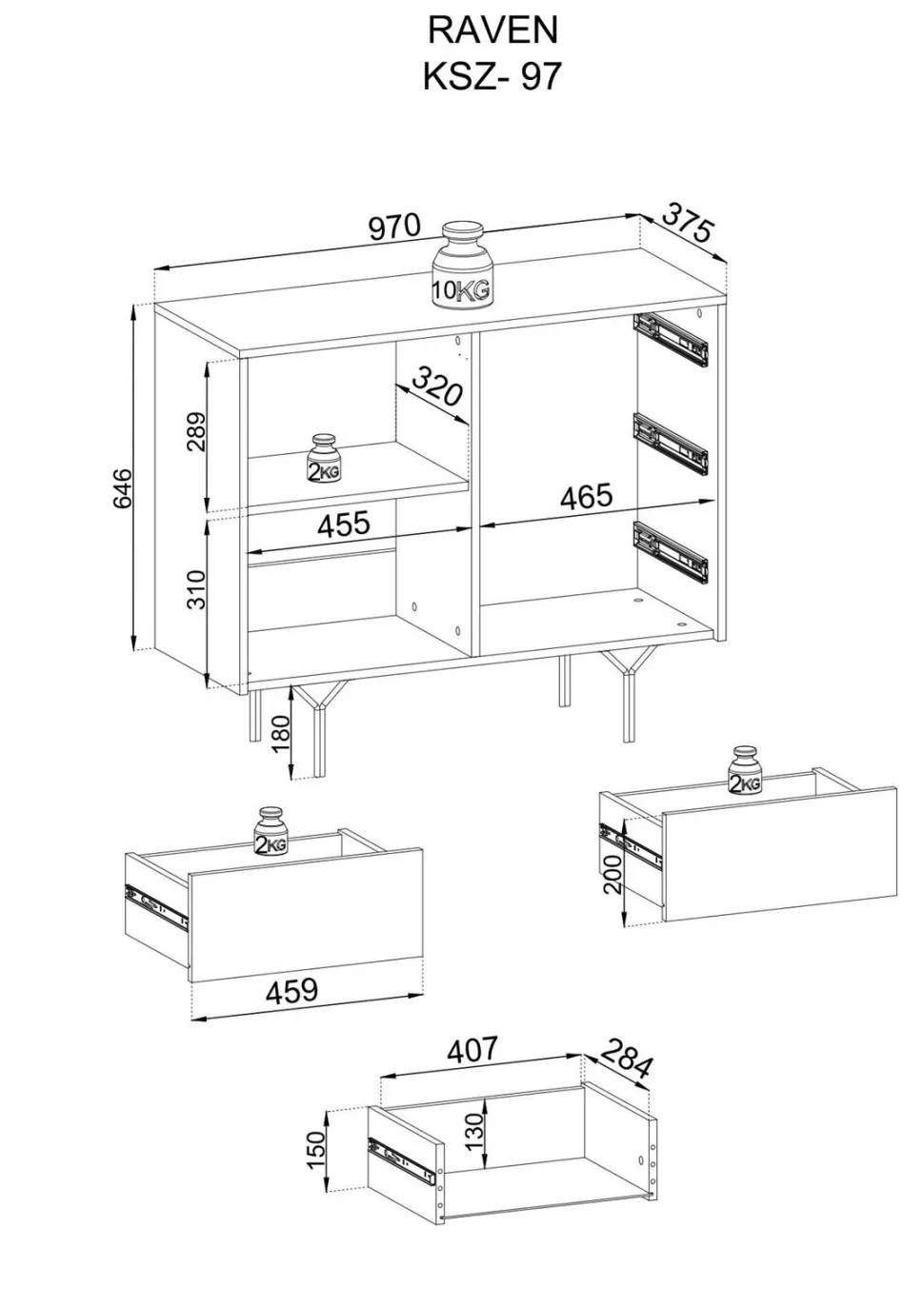 - Nierdzewne metalowe nogi komody odporne na wilgoć i zarysowania.