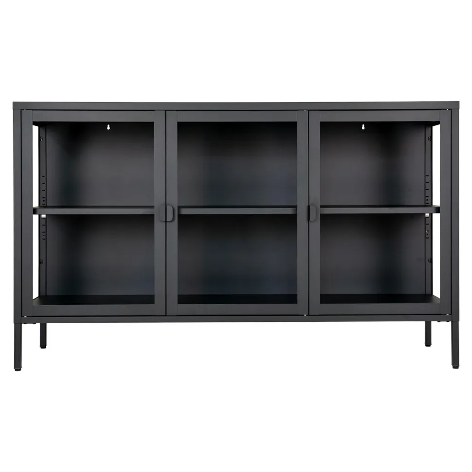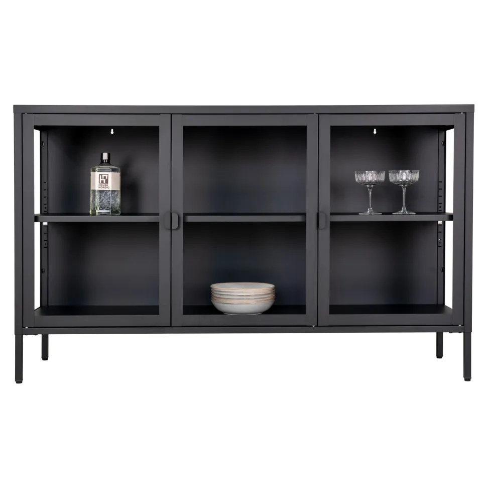 Komoda niska Brisbane czarna to mebel, który wprowadzi do Twojego domu odrobinę loftowego stylu. Szklane fronty i stalowa konstrukcja to połączenie, które doskonale wpisuje się w ten trend. Komoda ta doskonale sprawdzi się w salonie, pokoju młodzieżowym, przedpokoju, jadalni czy gabinecie.