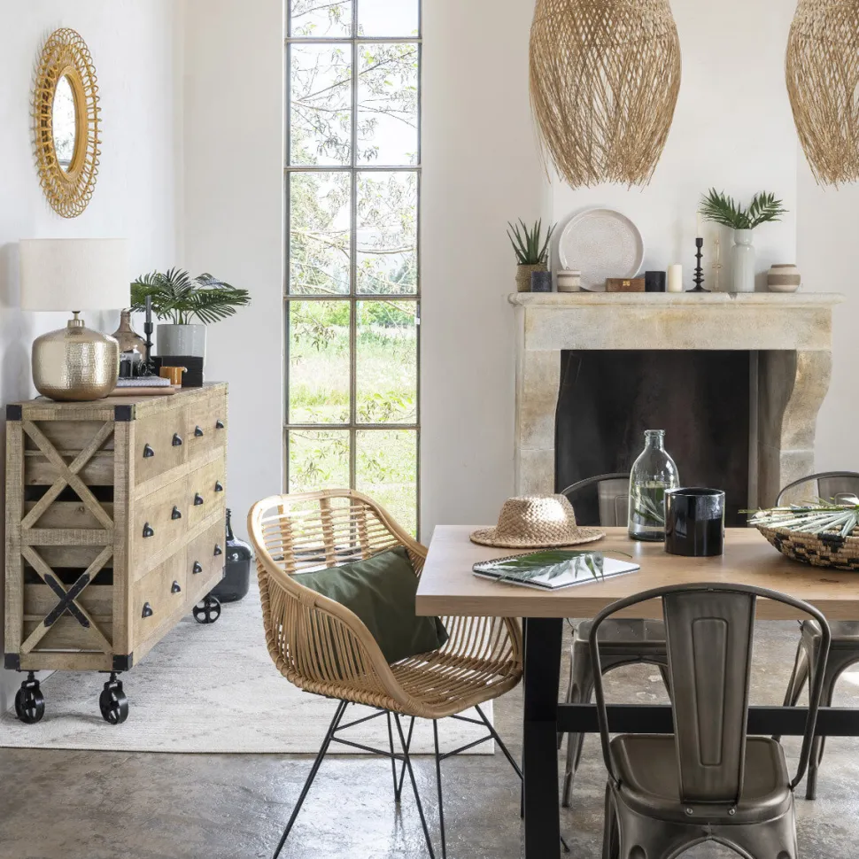 Praktyczność komody Silas podkreśla jej design. Prosta, ale elegancka forma mebla sprawia, że idealnie wpasuje się w różne aranżacje wnętrz – od orientalnych, przez kolonialne, aż po rustykalne. Metalowe uchwyty dodają meblowi industrialnego charakteru, a kółka ułatwiają przemieszczanie komody. Wszystko to sprawia, że komoda Silas jest nie tylko stylowym, ale również praktycznym dodatkiem do Twojego domu.
