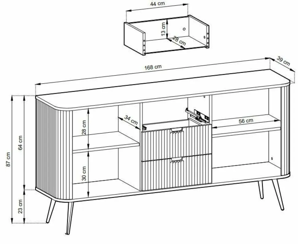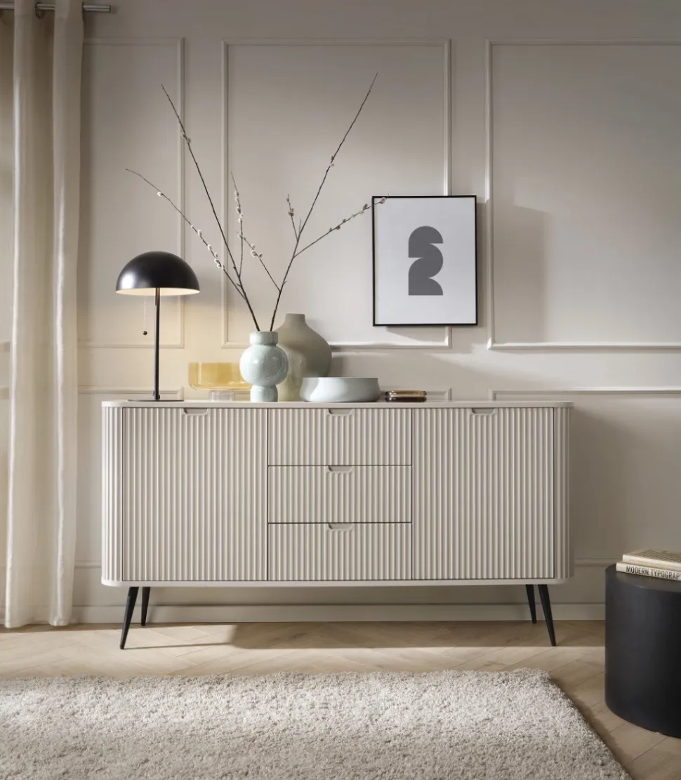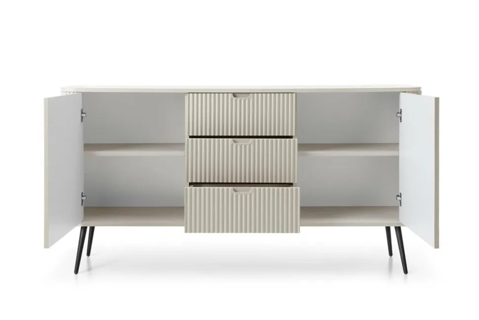 - Wyposażona w trzy szuflady i dwie szafki, komoda Seda oferuje dużo miejsca na przechowywanie