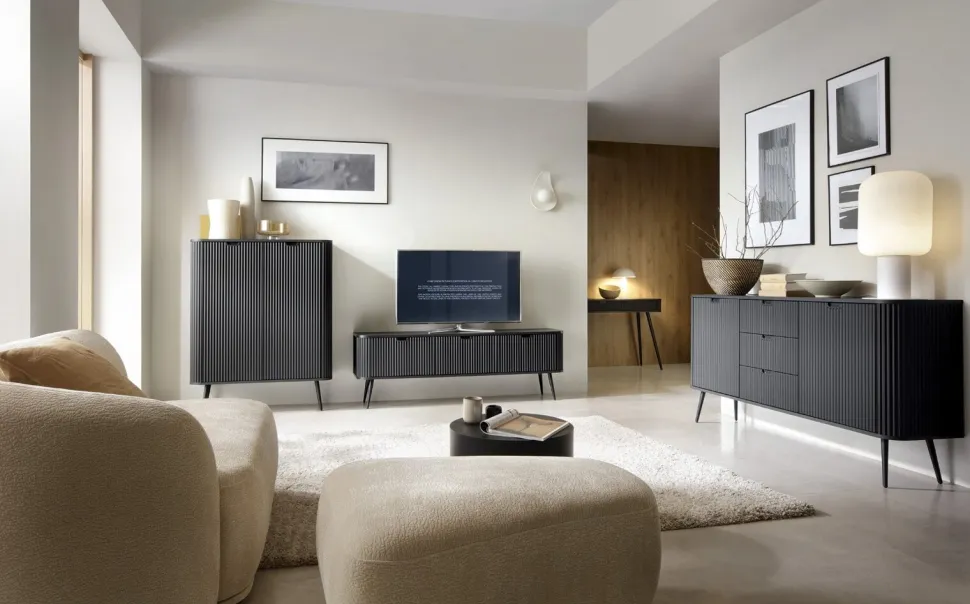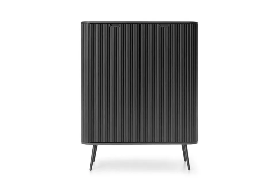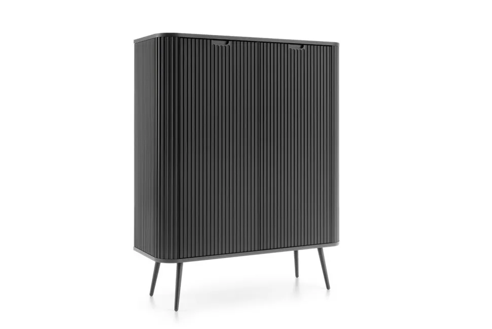 Dodatkowym atutem komody są detale wykonane z dbałością o każdy szczegół. Frezowane detale i metalowe nóżki nadają meblowi elegancki charakter, który podkreśli estetykę Twojego wnętrza, dodając mu nowoczesnego i stylowego wyglądu.