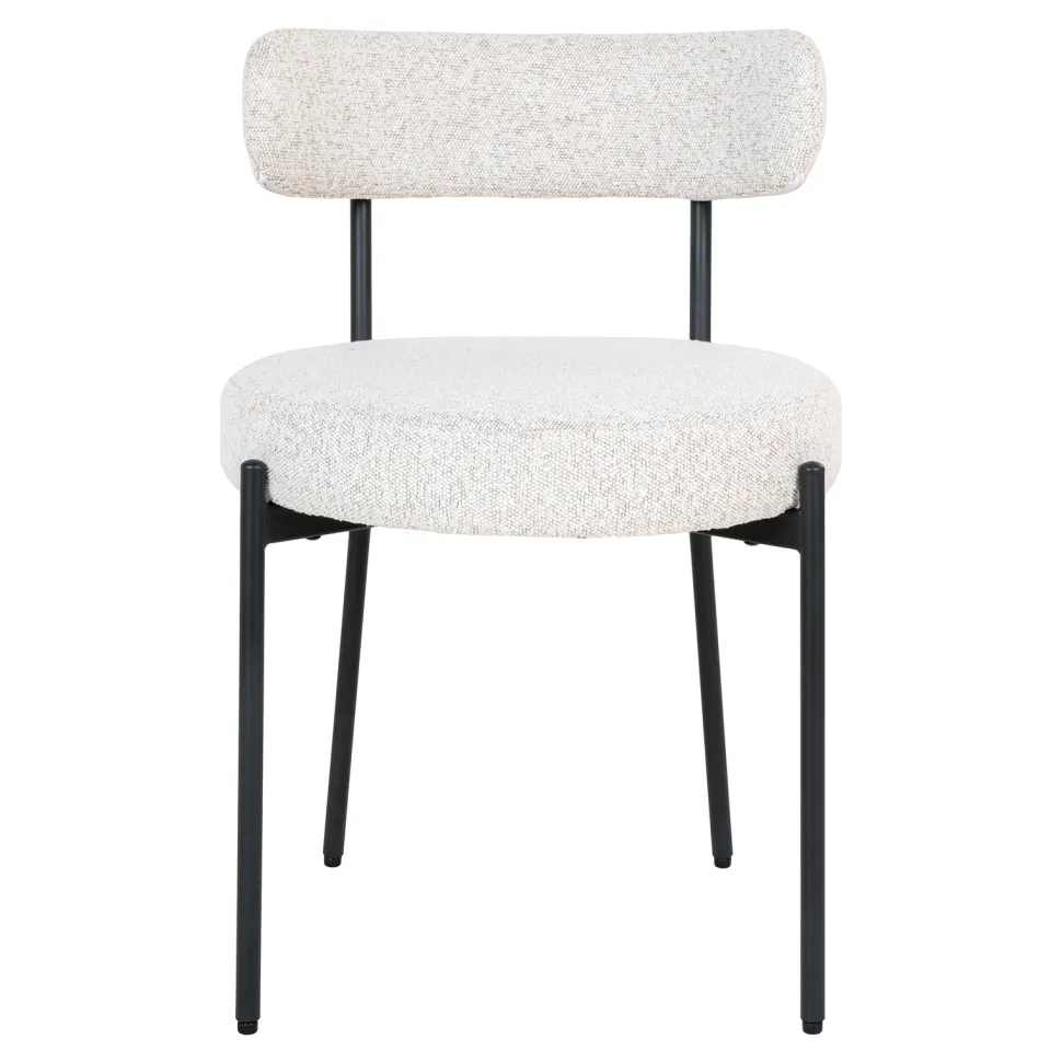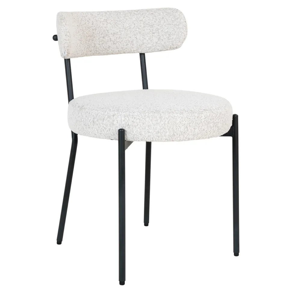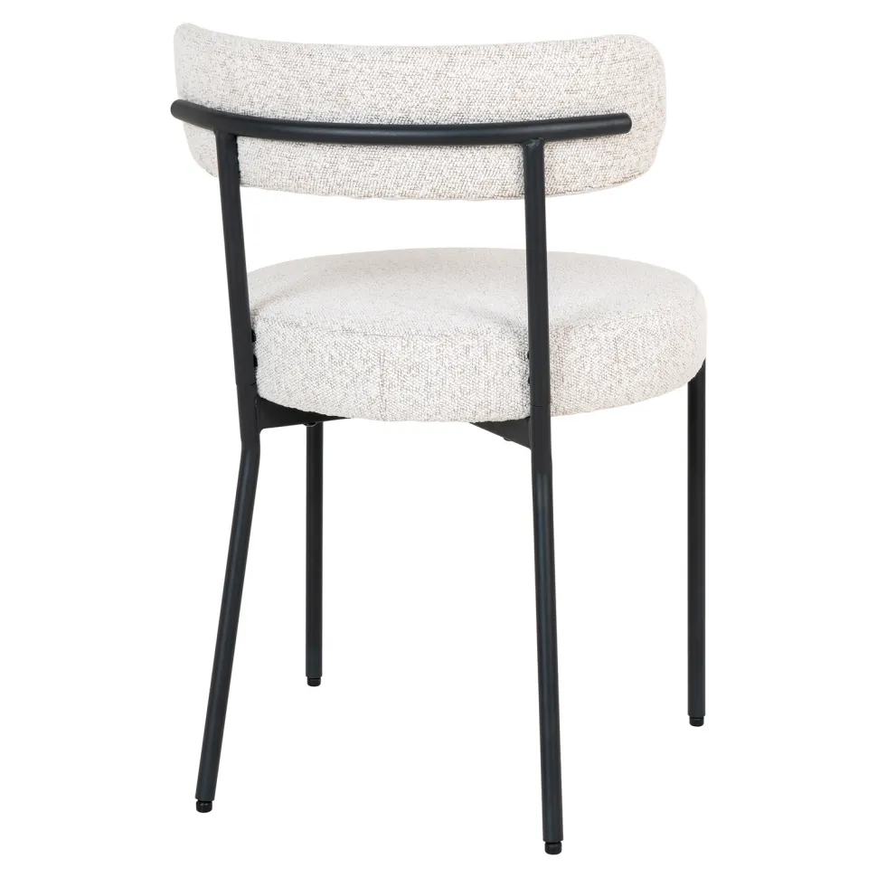- Uniwersalna kolorystyka – biała tkanina boucle siedziska i czarne, stalowe nogi.