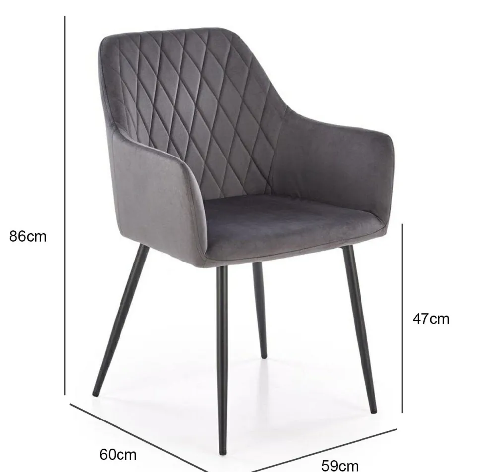 wymiary: 59/60/86/47 cm; materiał: tkanina – velvet / stal malowana proszkowo, kolor: popielatyIlość w paczce: 2Ilość paczek: 1Paczka 1:68.00 x 62.00 x 60.00, 13.50 KG