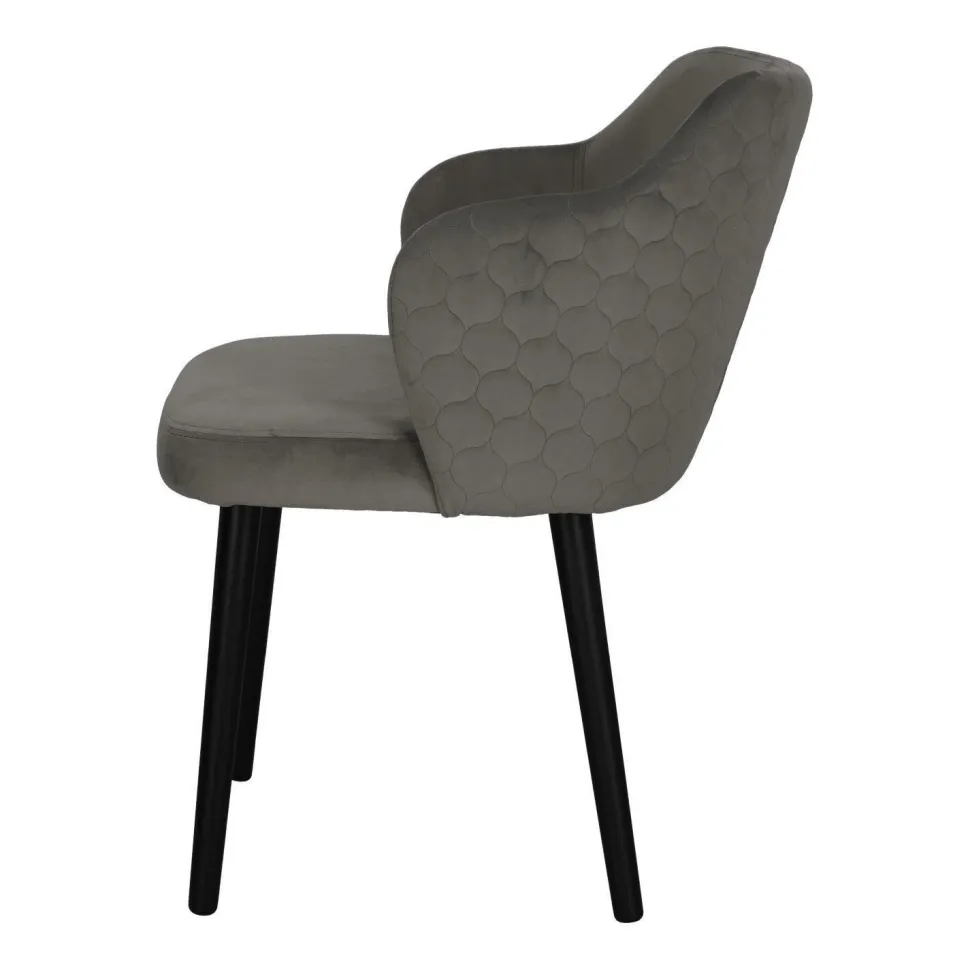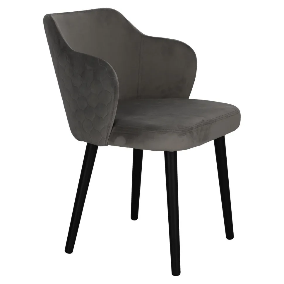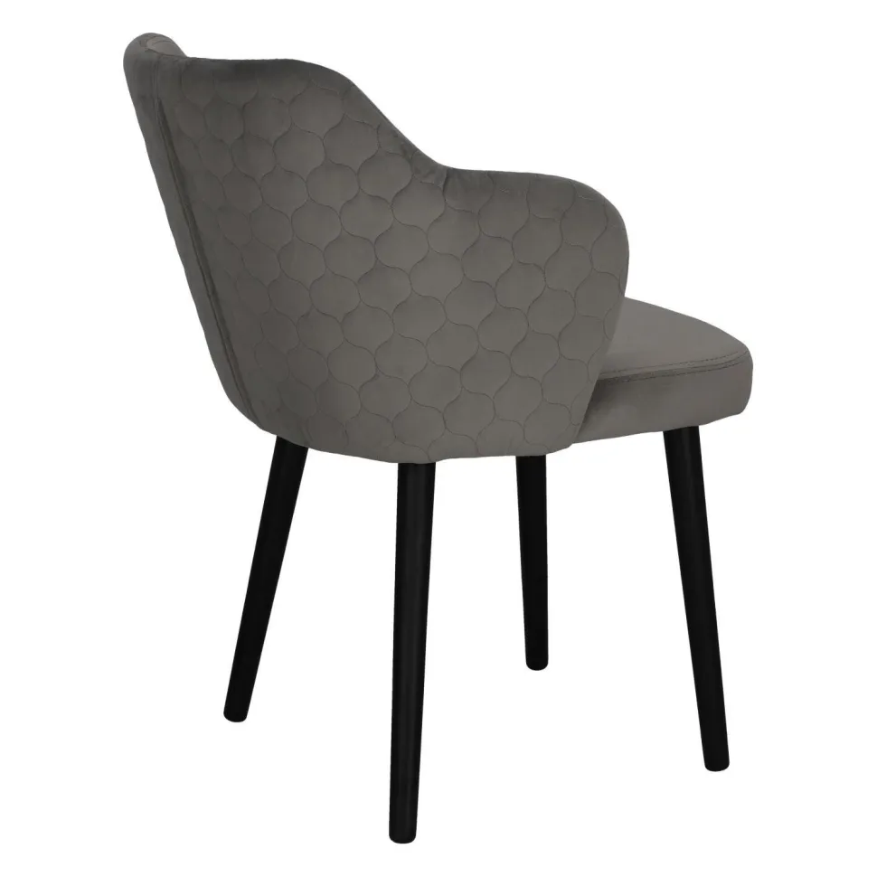 Cechą charakterystyczną krzesła Bergen jest złożony z geometrycznych form wzór na tylnej części oparcia. Tkaninę, którą zostanie ono obite można wybrać według własnych preferencji z wielu dostępnych wzorników.