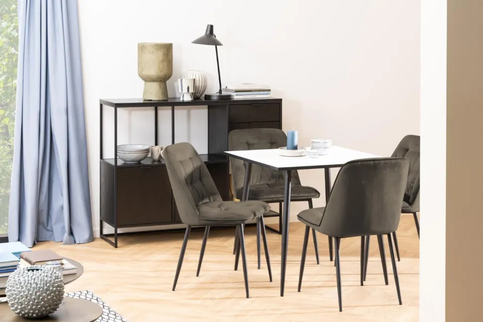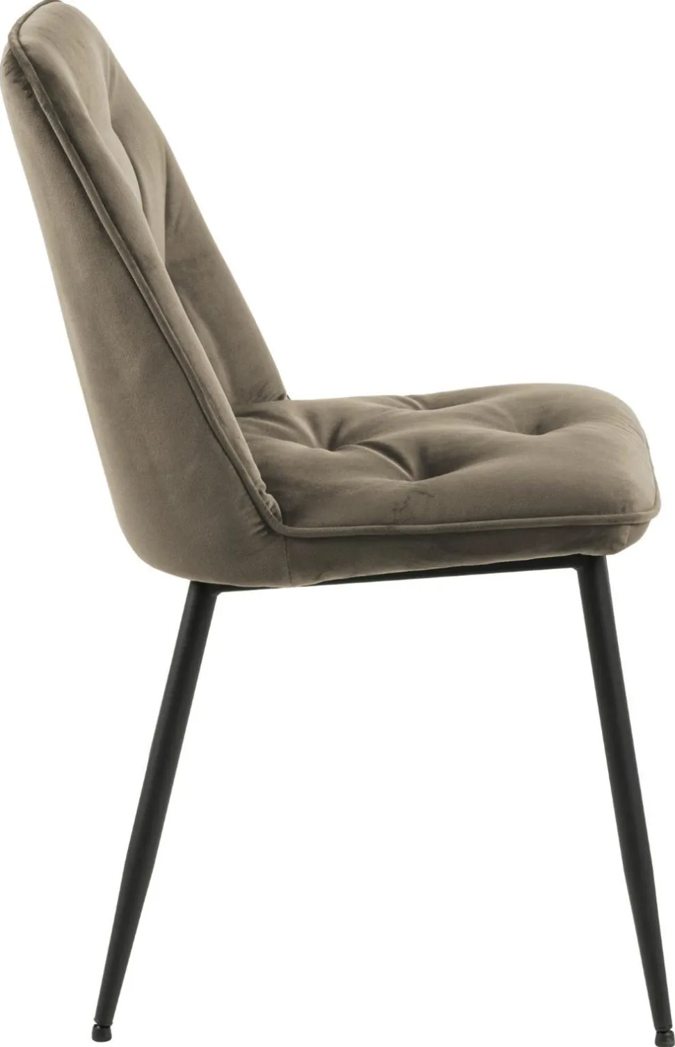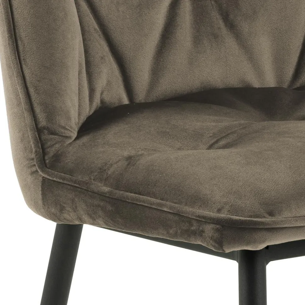 Krzesło Brooke to połączenie ponadczasowych materiałów z funkcjonalną formą. Posiada idealnie wyprofilowane siedzisko obite pianką tapicerską. Pikowane krzesło będzie miejscem, w którym będziesz w stanie wygodnie spędzić długie godziny. Jego podstawa stworzona z solidnych nóg wykonanych z metalu malowanego proszkowo na kolor czarny. Welwetowe krzesło z czarnymi nogami będzie świetnym rozwiązaniem do salonu w stylu skandynawskim, a także doskonale posłuży jako krzesło do toaletki w sypialni glamour. Może także perfekcyjnie podkreślić charakter poczekalni lub hotelowego lobby.