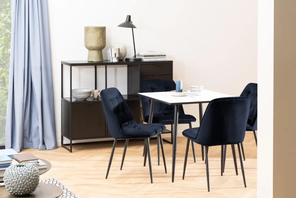 Od mebli oczekujemy wiele, zwłaszcza tych, które towarzyszą nam bardzo często w przeciągu dnia. Chcemy, aby były wygodne, piękne i dostosowane do naszych prywatnych potrzeb. Jeszcze jedną bardzo ważną kwestią jest oddziaływanie na nasze zmysły. Materiał, z którego stworzony jest mebel,potrafi ukoić, wyciszyć i sprawia, że chcemy do niego wracać. Taka jest właśnie welwetowa tkaninaVICfabric midnight blue 77AC FR, która z pewnością spodoba się wszystkim, dla których liczy się dotyk. Brooke pokryta jest delikatnym „meszkiem”, dzięki czemu jej obecność we wnętrzuzadba o jego przytulność i komfort na wysokim poziomie. Dodatkowo charakteryzuje ją piękny mieniący się wygląd i głębia intensywnego koloru. Jest to wytrzymały materiał, który przy odpowiedniej pielęgnacji zachowa świetny wygląd na lata! Wystarczy raz na jakiś czas przeczesać go miękką szczotką.
