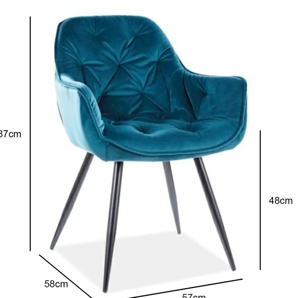 Przedstawiamy aksamitne krzesło Cheer – elegancką i niezwykle stylową opcję siedzenia, która jest idealna do nowoczesnego domu. Wykonany z najwyższej jakości aksamitnej tkaniny Bluvel, luksusowy dotyk aksamitu jest połączony z subtelnym połyskiem, który wniesie współczesne wyrafinowanie do każdego pomieszczenia. Dzięki wysokim podłokietnikom oraz niezwykle wygodnemu, pikowanemu siedzisku i oparciu, krzesło z pewnością przyciągnie uwagę w Twoim salonie lub jadalni. Dzięki czterem malowanym proszkowo, metalowym nogom zapewniającym stabilność i trwałość, krzesło to pozostanie częścią Twojego domu przez wiele lat. Dodatkowo, dzięki certyfikacji OEKO-TEX i zatwierdzeniu do użytku komercyjnego, możesz zaufać jakości tego krzesła, gdy przyjdzie czas na spotkanie z rodziną lub organizację imprez.