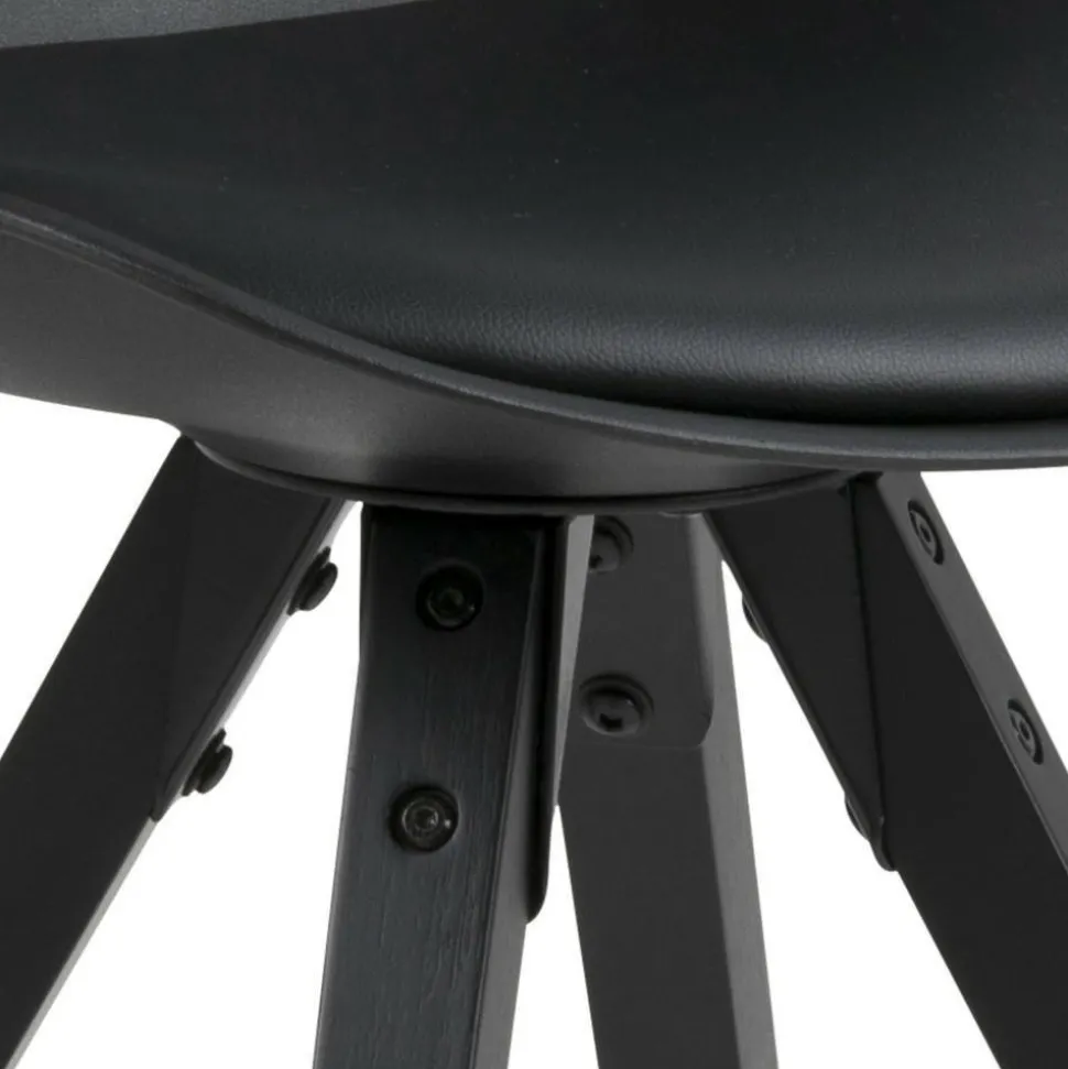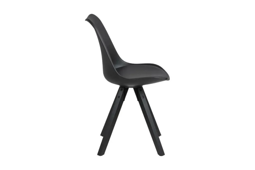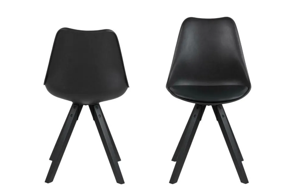 Podstawa krzesła Dima wykonana została natomiast z olejowanego drewna kauczukowego,pokrytego ochronną warstwą lakieru w kolorze czarnym, zabezpieczającą przed zabrudzeniami. Cztery grube drewniane nogi ustawione pod kątem zapewniają bezpieczeństwo i stabilność. Krzesło wymaga montażu podstawy do siedziska za pomocą śrub.