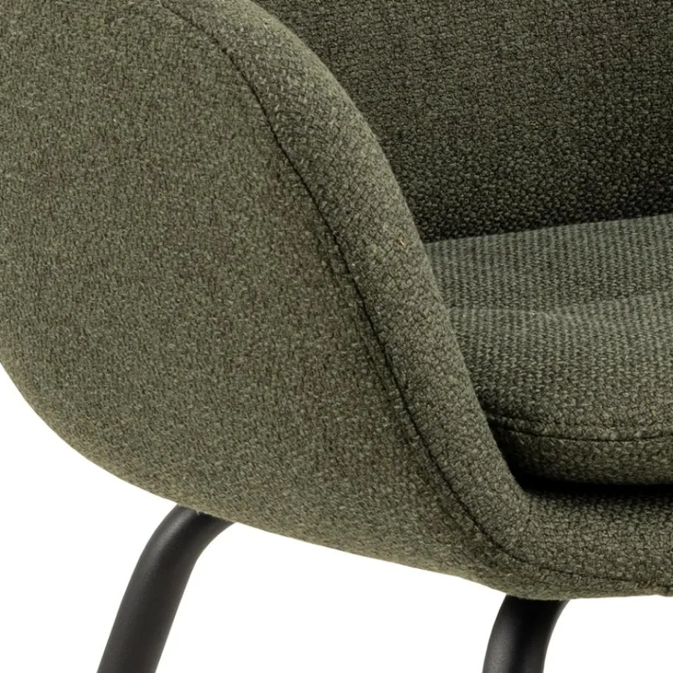 - Wykonane z tkaniny Alea green 61 i malowanej proszkowo stali, co zapewnia jego trwałość i stabilność.