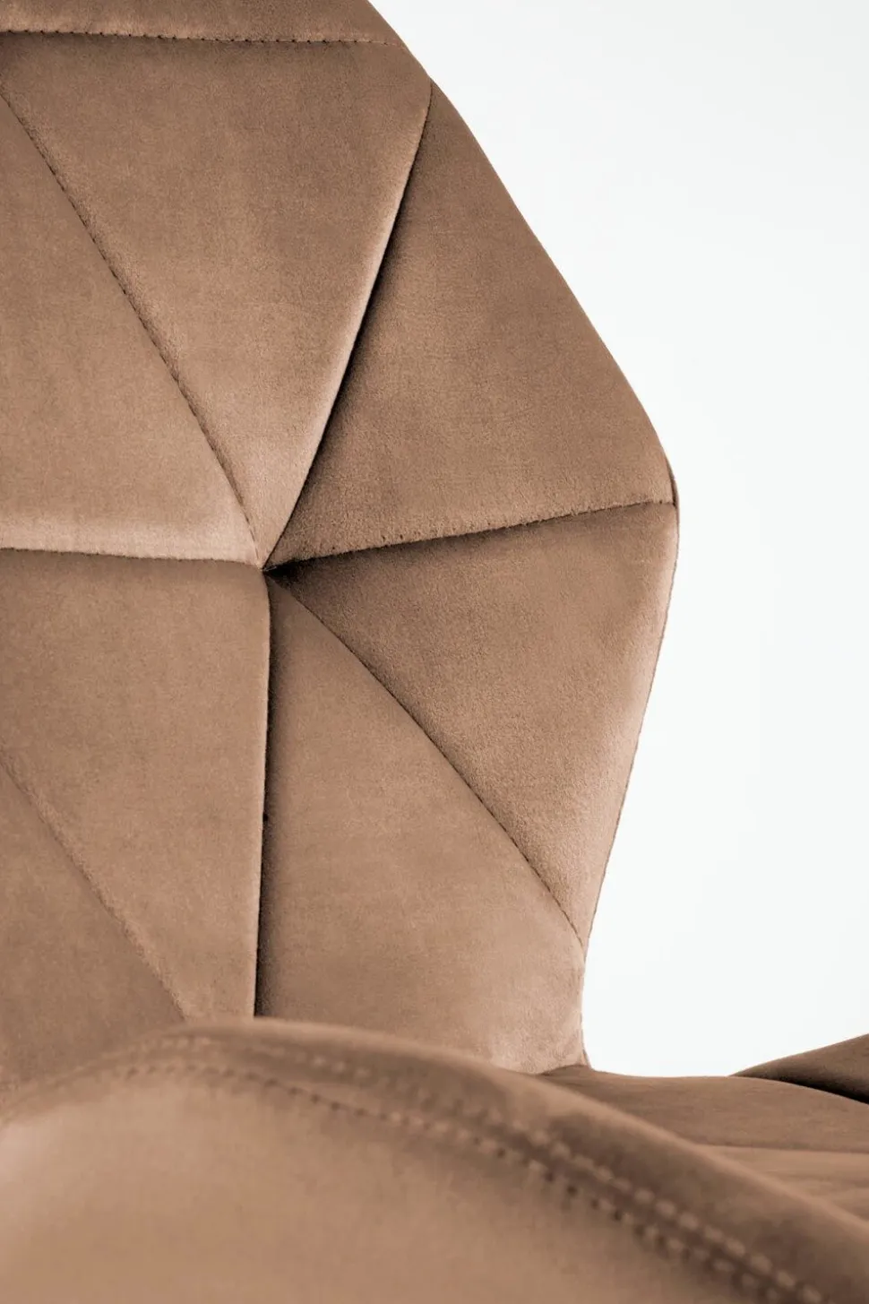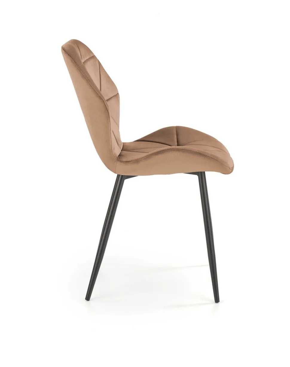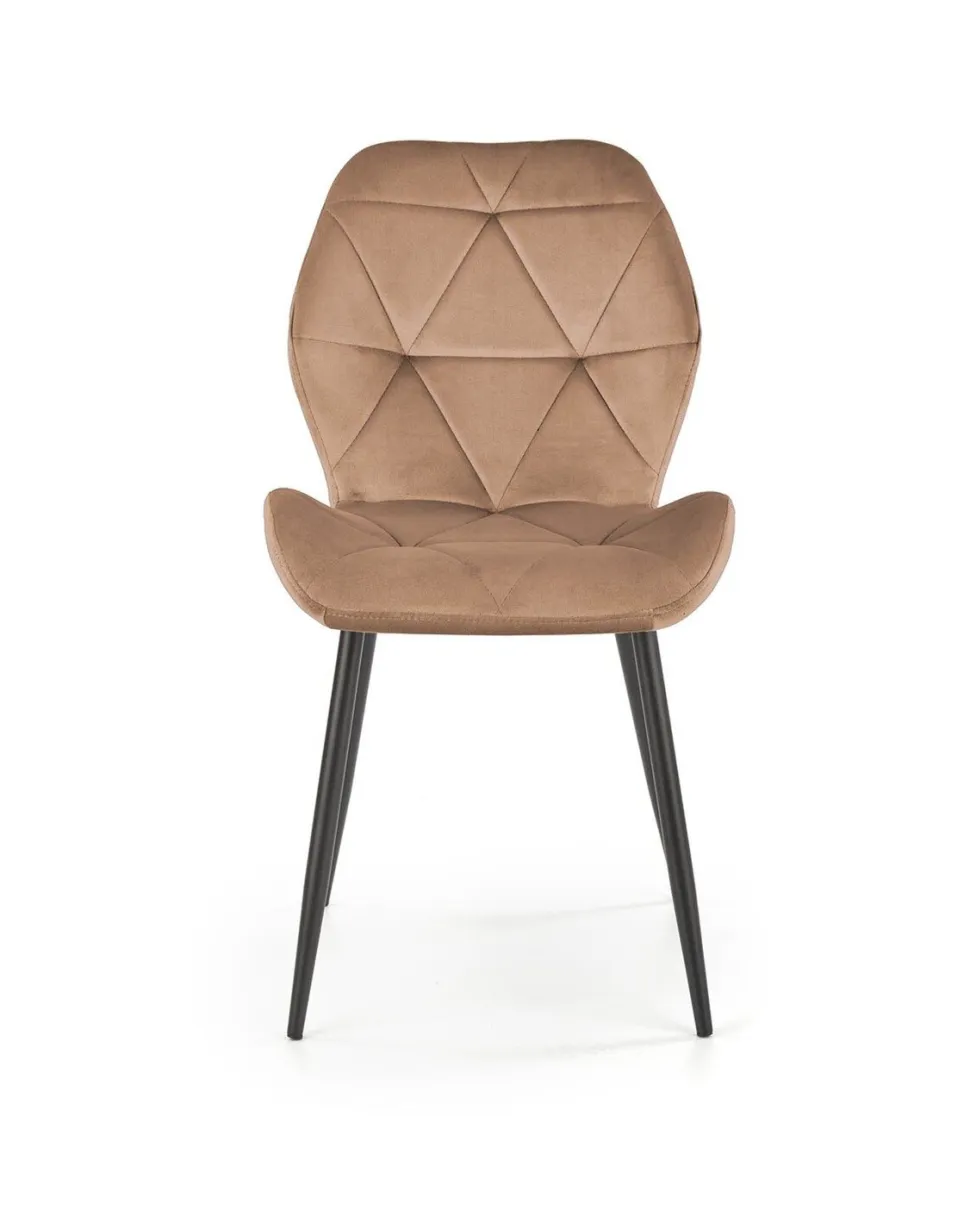 Krzesło Eve – elegancja i komfort w jednym meblu Krzesło Eve to połączenie funkcjonalności i wyrafinowanego designu, które stworzy idealny akcent w Twoim wnętrzu. Jego solidna podstawa z czarnej stali malowanej proszkowo to nie tylko gwarancja trwałości, ale także nowoczesnego wyrazu. Siedzisko krzesła wykonane z przyjemnej w dotyku tkaniny welurowej w stonowanymbeżowym kolorze jest zaprojektowane z myślą o Twoim komforcie. Pikowane siedzisko nie tylko nadaje meblowi elegancji, ale również zapewnia wygodę podczas długotrwałego siedzenia. To idealny mebel na chwile relaksu czy do spotkań przy stole. Krzesło Eve to także szeroka paleta modnych kolorów do wyboru, co pozwala dostosować je do swojego osobistego gustu oraz charakteru pomieszczenia. Widoczne przeszycia na siedzisku dodają meblowi subtelnego uroku, co czyni je nie tylko funkcjonalnym, ale także dekoracyjnym elementem wystroju wnętrza. Krzesło Eve to nie tylko miejsce do siedzenia, to wyraz Twojego stylu i wyjątkowości wnętrza. Przygotuj się na mądry wybór! Krzesło Eve to harmonia designu i wygody. Stalowa podstawa malowana proszkowo gwarantuje trwałość i nowoczesny wygląd. Pikowane siedzisko z miłej w dotyku tkaniny welurowej dostarcza niezrównanego komfortu. Dostępność wielu modnych kolorów umożliwia dopasowanie krzesła do każdego wnętrza. Widoczne przeszycia dodają meblowi uroku i elegancji.
