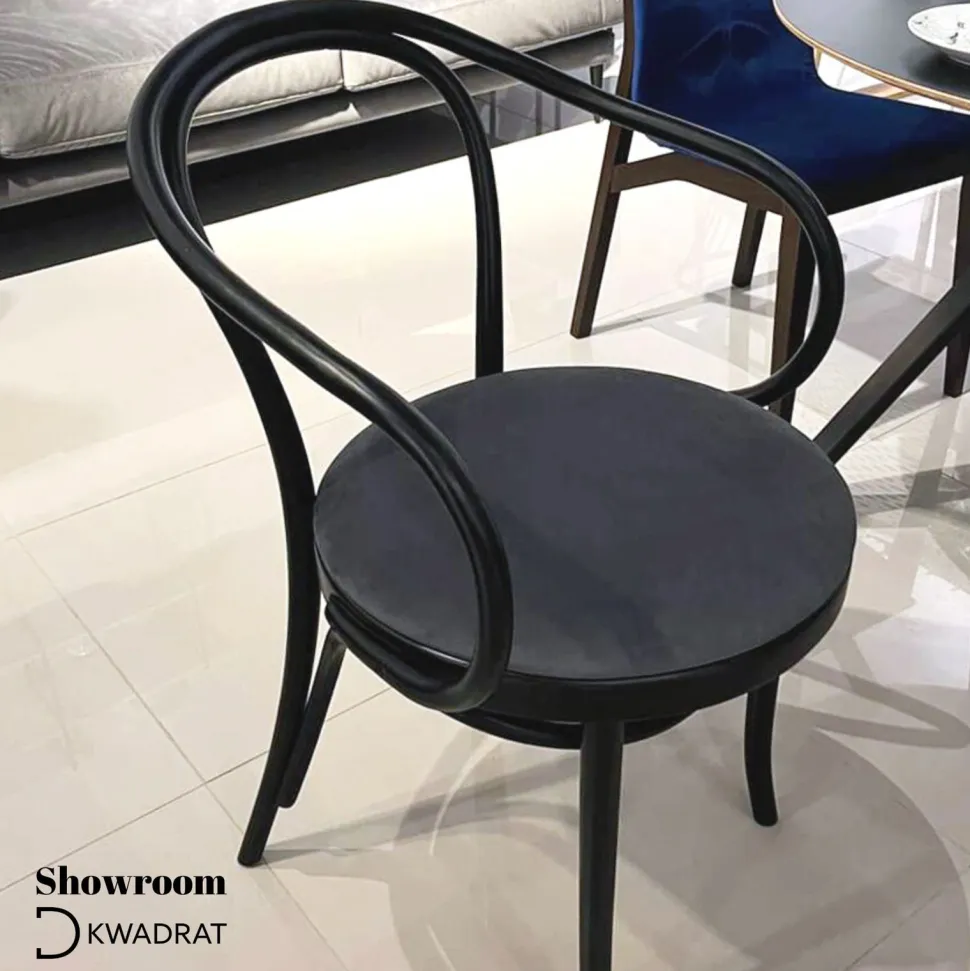 Krzesło B-9 wyprodukowane przez firmę Fameg jest niezwykłym meblem o fantazyjnym kształcie. Jego szkielet ręcznie gięty jest z drewna bukowego, przez co każdy model jest unikatowy i niepowtarzalny. Krzesło reprezentuje sobą nowoczesną myśl i powrót do stylu retro. Dzięki ciekawej formie zdobić będzie wnętrze, pasując zarówno do aranżacji alternatywnych czy też bardziej klasycznych. To lekkie i subtelne krzesło pasować będzie zarówno do domowego salonu jak i stylowej kawiarni czy restauracji.