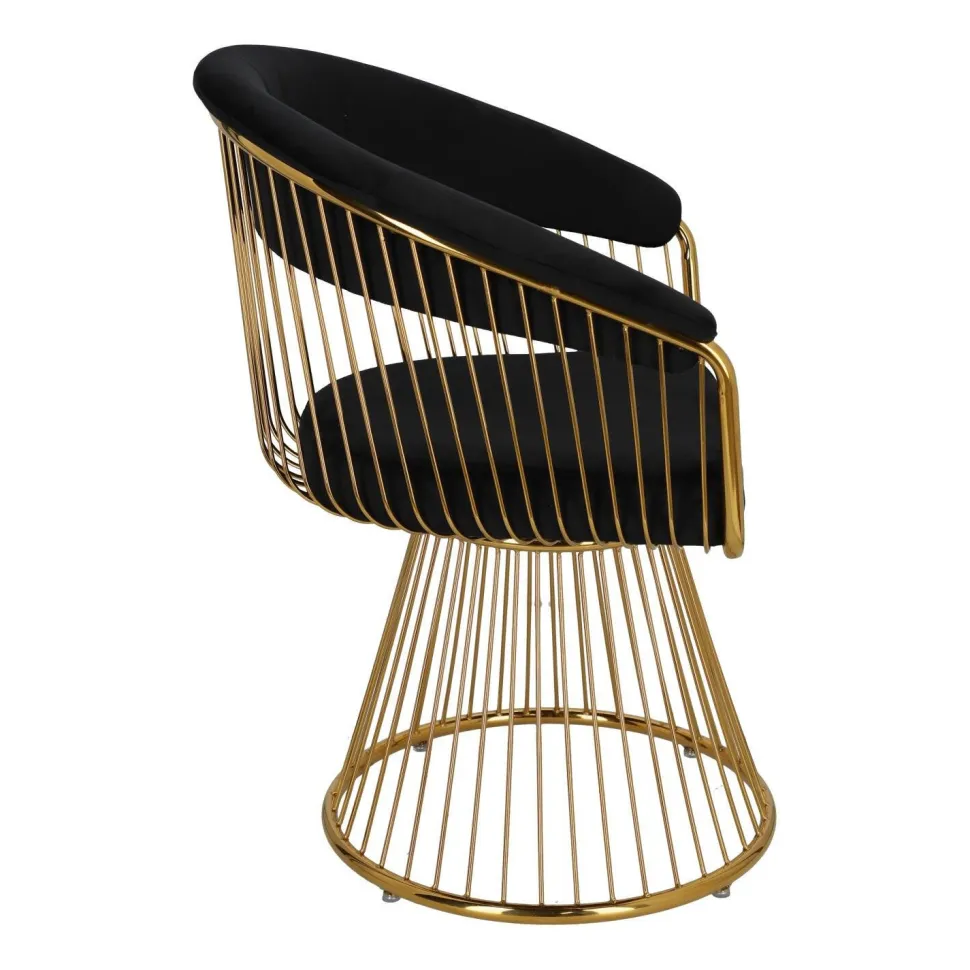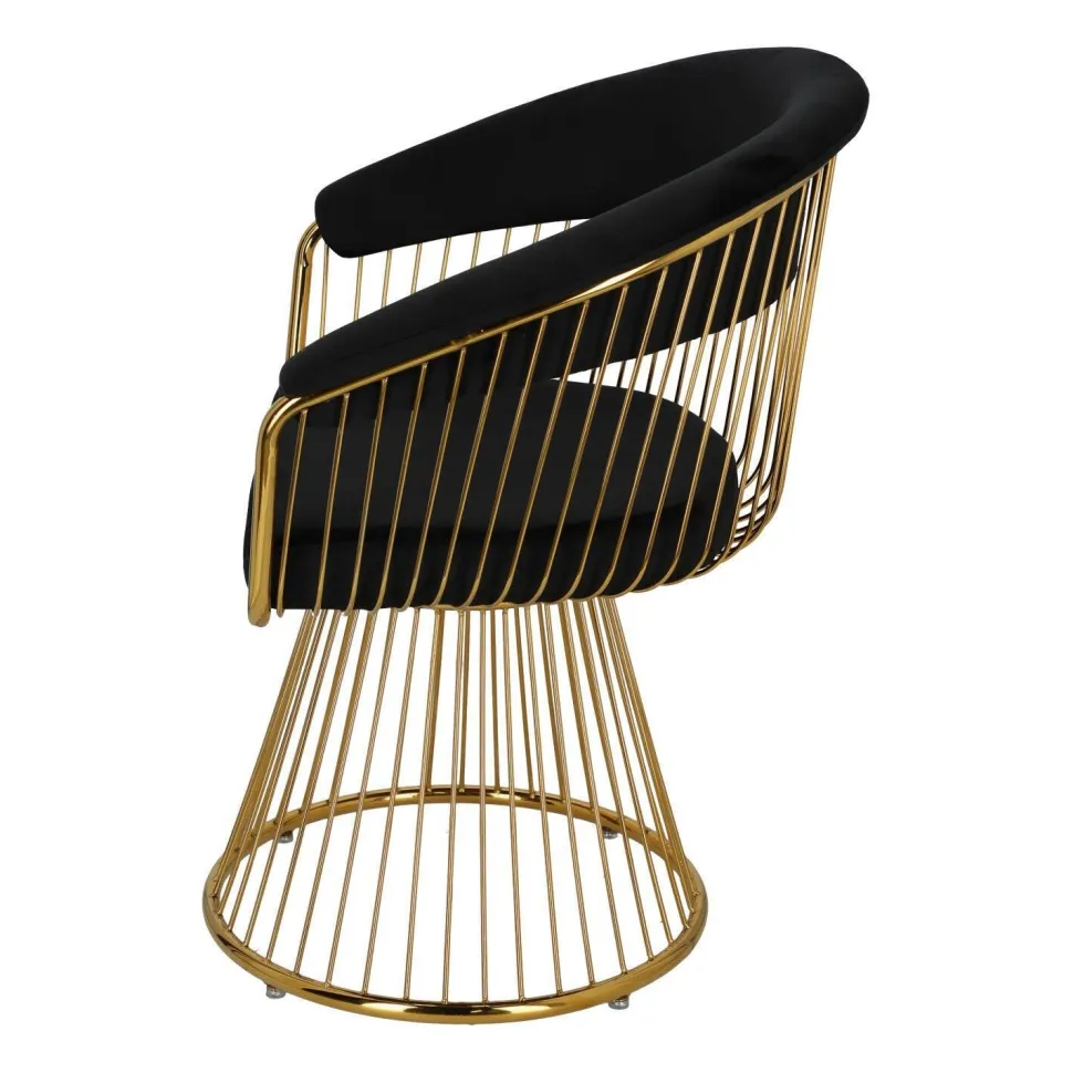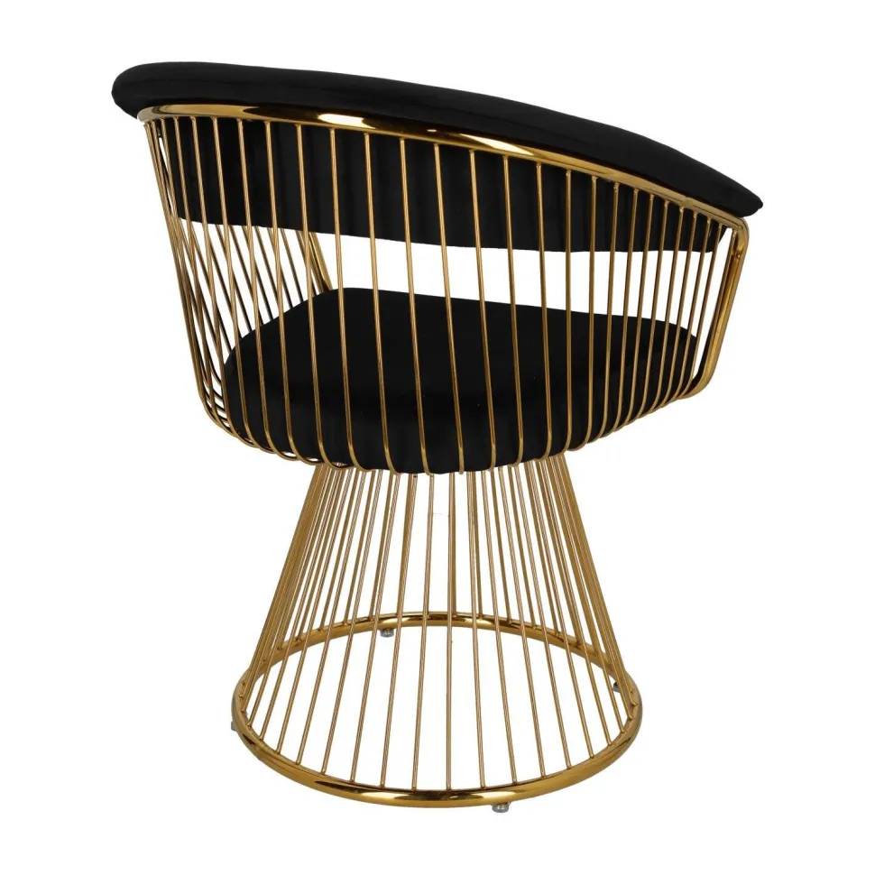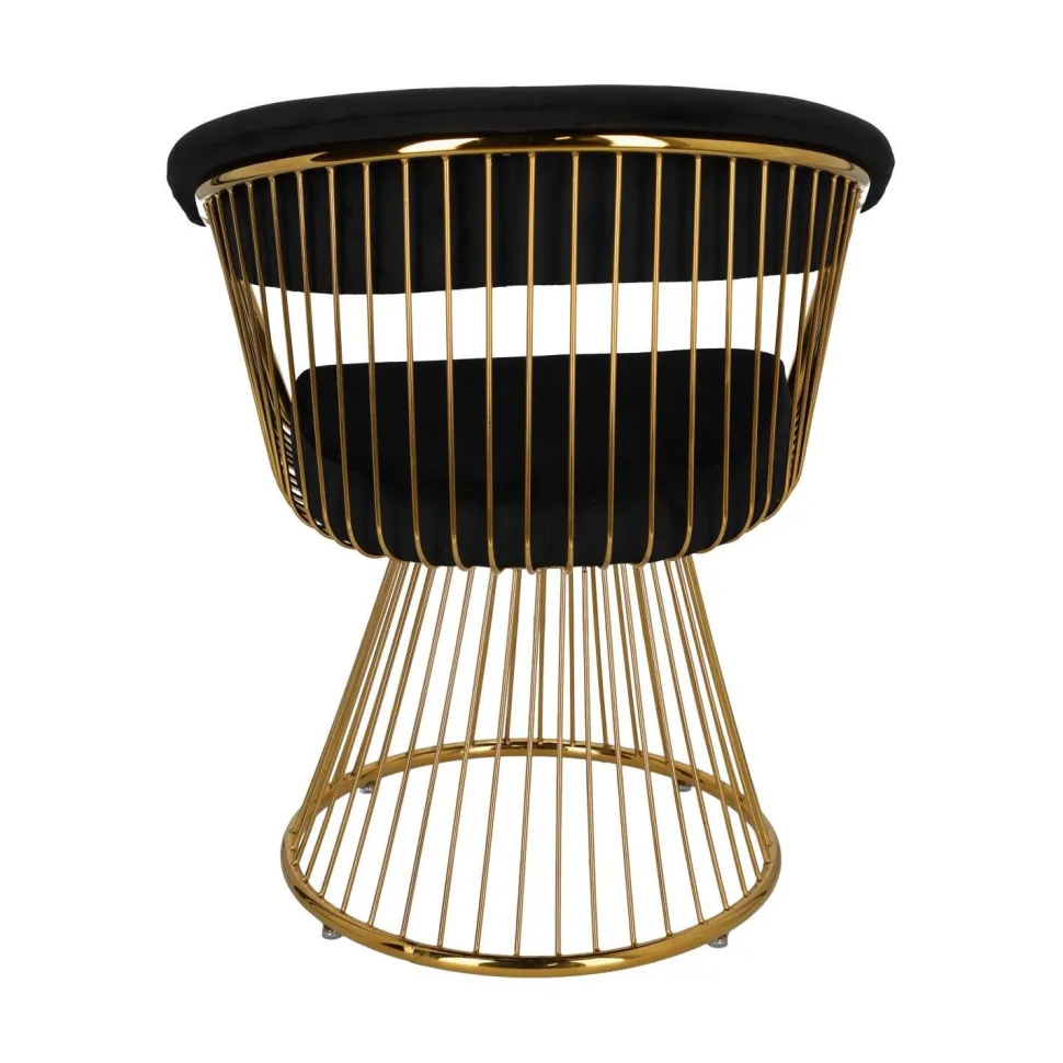 Krzesło Feeny Velvet firmy DKwadrat jest idealne do każdego eleganckiego wnętrza w stylu glamour. Krzesło ma luksusową tapicerkę z czarnego aksamitu i absolutnie obłędną złotą ramę, która swoim blaskiem wprowadza niesamowity klimat do naszego wnętrza.
