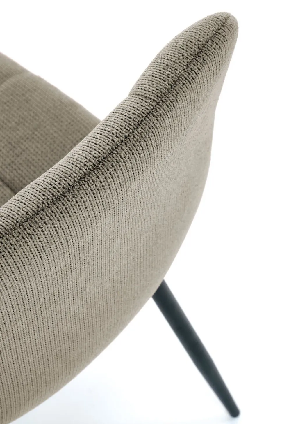 - Krzesło Fime posiada wygodne siedzisko i oparcie wykonane z przyjemnej w dotyku tkaniny.