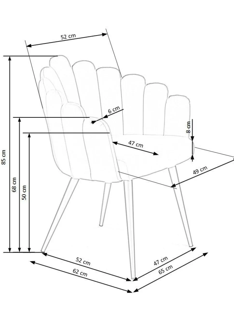 Tapicerowane krzesło glamour Finger – Intesi Krzesło Finger od Intesi łączy nowoczesny styl z luksusową aksamitną tkaniną, tworząc efektowne i wygodne siedzisko. Dzięki czterem nogom ze stali malowanej proszkowo, tapicerowane krzesło jest idealne do każdego pomieszczenia. Przedstawiamy krzesło Finger – najnowszy dodatek do kolekcji mebli domowych. Efektowne i nowoczesne krzesło nada wyrazu każdemu pomieszczeniu w Twoim domu. Jego aksamitne siedzisko z tkaniny zapewnia niezrównany komfort, a malowane proszkowo stalowe nogi zapewniają doskonałą stabilność i wytrzymałość. Krzesło Finger o wymiarach 65/62/85 cm to ekonomiczna, ale stylowa i równie elegancka opcja dla każdej przestrzeni. Podnieś wystrój swojego salonu lub sypialni dzięki temu olśniewającemu i funkcjonalnemu meblowi! Dodaj krzesło Finger do swojego domu już dziś, a na pewno się nie zawiedziesz. O tym warto pamiętać! Ciesz się luksusowym i wygodnym fotelem Finger z aksamitną tkaniną i nowoczesnym stylem glamour. Malowana proszkowo stalowa rama zapewnia doskonałą stabilność, a idealne wymiary zapewniają idealne miejsce do siedzenia.. Solidne i trwałe krzesło Finger zostało zaprojektowane tak, aby służyć przez wiele lat.