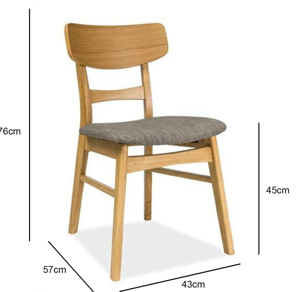 Przedstawiamy krzesło Fiona — nowoczesne podejście do projektów w stylu vintage z czasów PRL. Jest idealne do dodania stylu i nostalgicznych wspomnień do każdej jadalni! Krzesło jest klasycznie wykonane z drewna kauczukowego oraz forniru dębowego z jasnoszarym, tapicerowanym tkaniną siedziskiem.