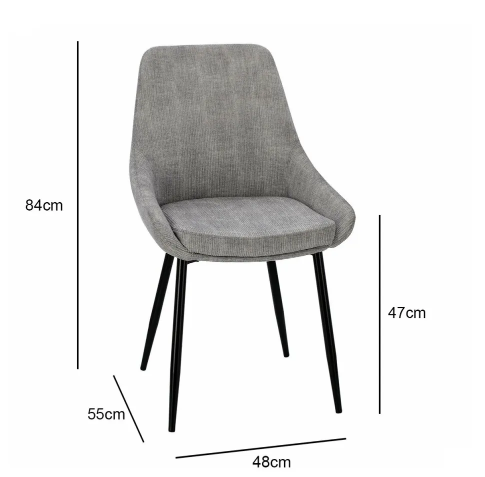 Krzesło Floyd to wygodne krzesło łączące w sobie modny minimalizm i nowoczesne wykończenia. Unikalne, miękkie siedzisko krzesła zostało umieszczone na smukłych nogach, dzięki czemu całość prezentuje się lekko i stylowo. Podstawę krzesła stanowią metalowe, pomalowane proszkowo na czarno, nogi gwarantujące konstrukcji stabilność. Na nóżkach umieszczone zostało miękkie siedzisko pokryte nowoczesną tkaniną przypominającą sztruks, która jest niezwykle przyjemna w dotyku, zwiększając tym samym poziom komfortu podczas użytkowania. Krzesło Floyd to modne krzesło do jadalni. Będzie ono również odpowiednim krzesłem do restauracji. Siedzisko mebla odznacza się komfortową formą, dzięki czemu w krześle można poczuć się naprawdę wygodnie.Głębokość siedziska: 42cmSzerokość siedziska (bez boków): 37cm