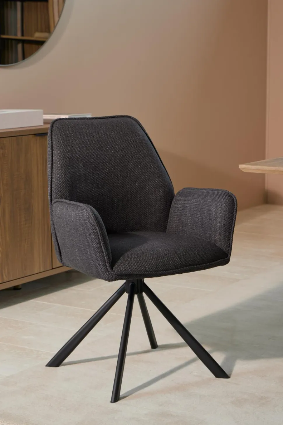 Antracytowe krzesło Actona z podłokietnikami