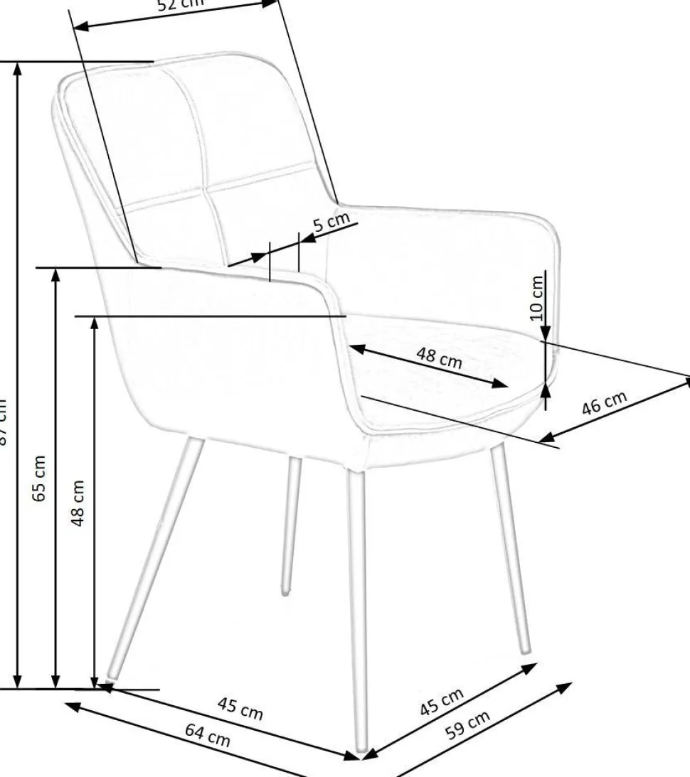 Elegancja glamour w modnym kolorze Krzesło Hannah to połączenie niezrównanej elegancji i niezwykłej wygody. Jego stalowa podstawa, pomalowana proszkowo na głęboki czarny kolor, nie tylko dodaje solidności, ale także wprowadza nowoczesny akcent do każdego wnętrza. To krzesło jest nie tylko piękne, ale również niezwykle praktyczne. Siedzisko i oparcie krzesła zostały starannie tapicerowane miękką i przyjemną w dotyku tkaniną welurową. Ta wyjątkowa tapicerka nie tylko dodaje krzesłu wyjątkowego uroku, ale także zapewnia niesamowity komfort podczas siedzenia. Możesz poczuć się jak w chmurze, kiedy usiądziesz na tym krześle. Hannah jest meblem wszechstronnym i nadaje się do różnych pomieszczeń. Czy to w salonie, jadalni czy pokoju młodzieżowym, to krzesło zawsze będzie wyglądać doskonale. Dostępność w dwóch modnych kolorach pozwala na dopasowanie go do Twojego osobistego stylu, podkreślając indywidualny charakter Twojego wnętrza.Aby zapewnić maksymalny komfort, krzesło Hannah jest wyposażone w praktyczne podłokietniki. Dodatkowo, ozdobne przeszycia na oparciu nie tylko stanowią element dekoracyjny, ale także są wyrazem dbałości o szczegóły i elegancji. To krzesło nie tylko wygląda świetnie, ale również jest funkcjonalne. Ciesz się nie tylko pięknym wyglądem, ale także niezwykłą wygodą, którą to krzesło oferuje. Niezależnie od tego, czy spędzasz czas czytając książkę, pracując przy biurku czy spotykając się z przyjaciółmi, krzesło Hannah zapewni Ci wygodę i styl. O tym warto pamiętać! Solidna stalowa podstawa zapewnia trwałość i stabilność krzesła Malowanie proszkowe na głęboki czarny kolor dodaje nowoczesności do wnętrza Tapicerka z miękkiego i przyjemnego w dotyku weluru zapewnia niesamowity komfort podczas siedzenia