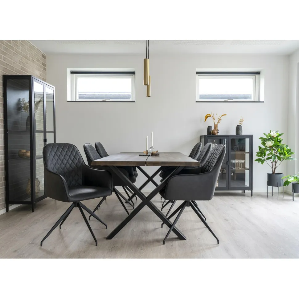 Krzesło Harbo to wyjątkowe połączenie stylu i praktyczności. Jego eleganckie, szare siedzisko wykonane z ekoskóry zwraca uwagę swoim ciemnym odcieniem, który idealnie komponuje się z czarną, stalową podstawą. Dzięki obrotowemu siedzisku, krzesło to jest niezwykle funkcjonalne – nie musisz odsuwać go od stołu, aby wstać. To doskonałe rozwiązanie dla małych przestrzeni, gdzie każdy centymetr ma znaczenie.