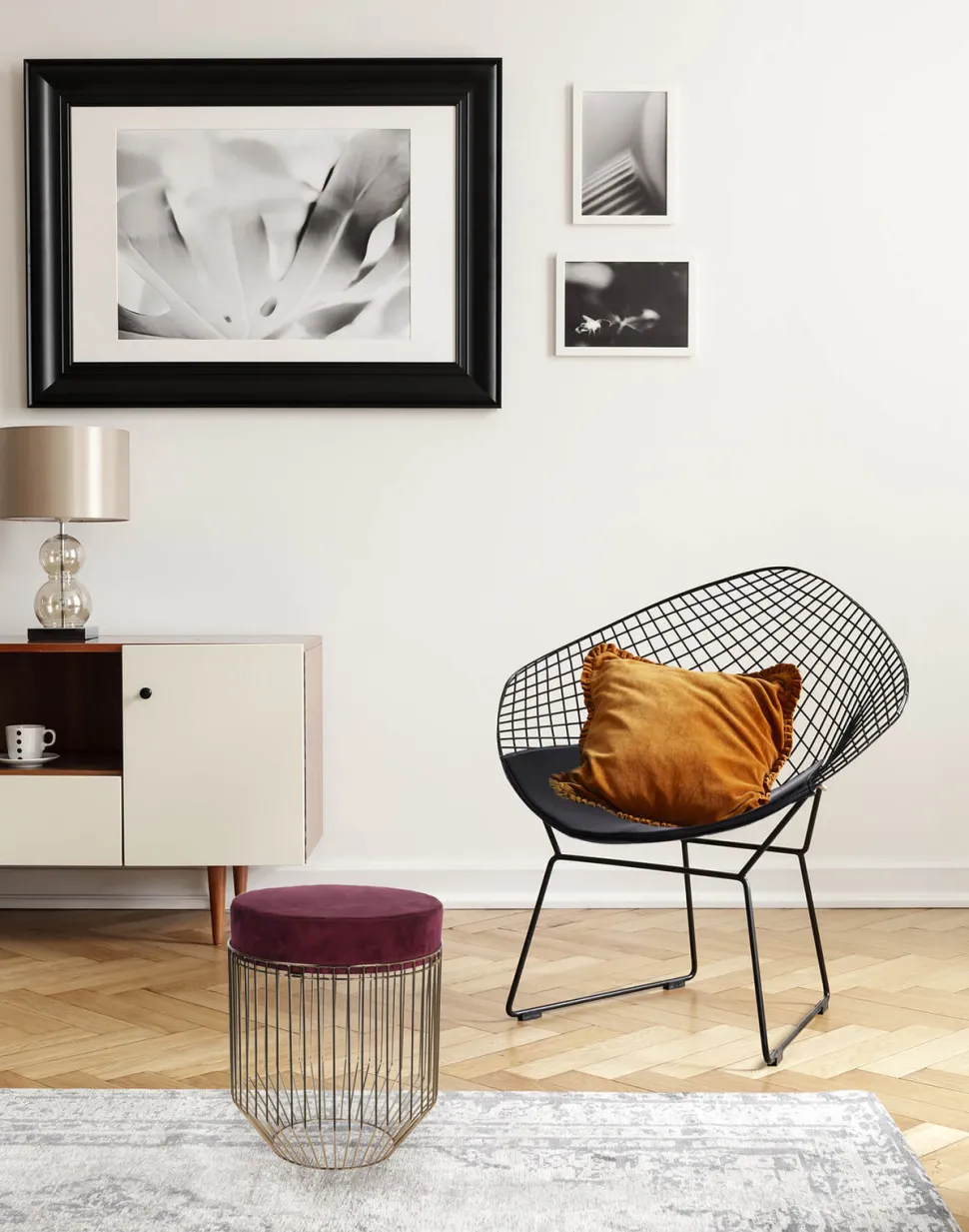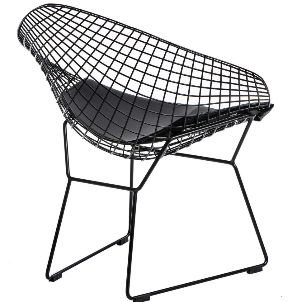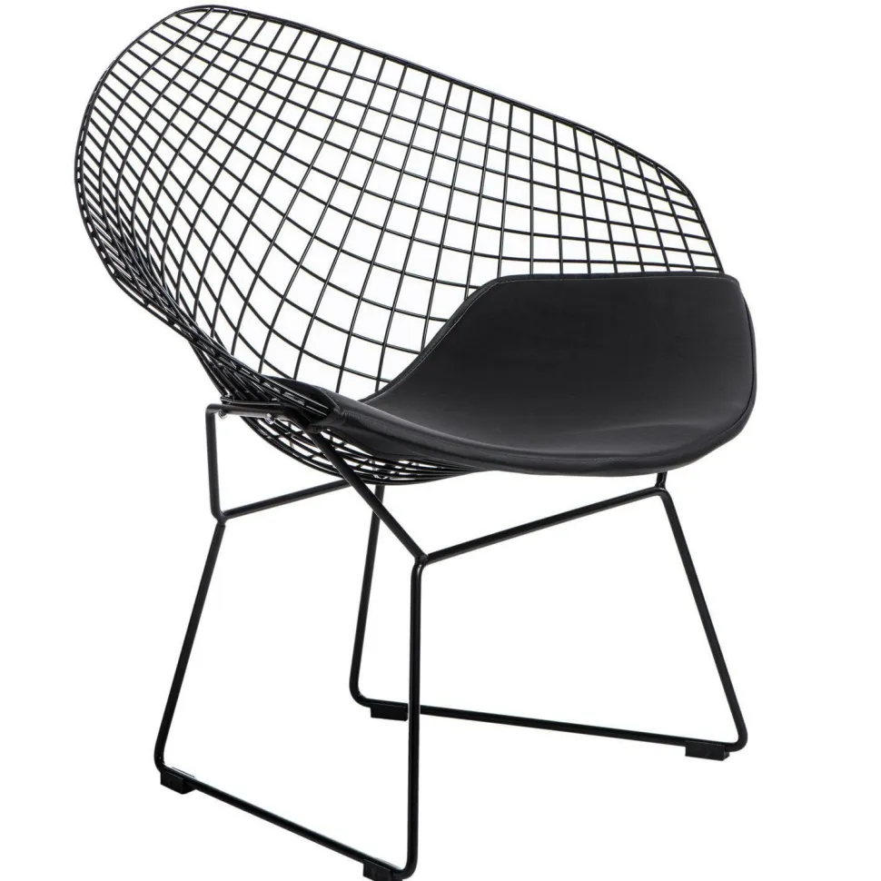 Designerskie krzesło HarryArm to designerska forma, która od lat zachwyca swoim wyglądem. Opływowy kształt sprawia, że krzesło staje się trójwymiarowe. Wykonane z metalu lakierowanego na kolor czarny o wykończeniu w połysku. Poduszka na siedzisku wykonana została ze skóry ekologicznej wykończonej matowo. Poduszkę należy przymocować do siedziska za pomocą rzepów znajdujących się na jej spodzie. Produkt wymaga montażu. Jego maksymalne obciążenie wynosi 120kg. Krzesło w stylu Glamour posiada podłokietniki, podstawą są płozy z nóżkami posiadającymi podkładki.