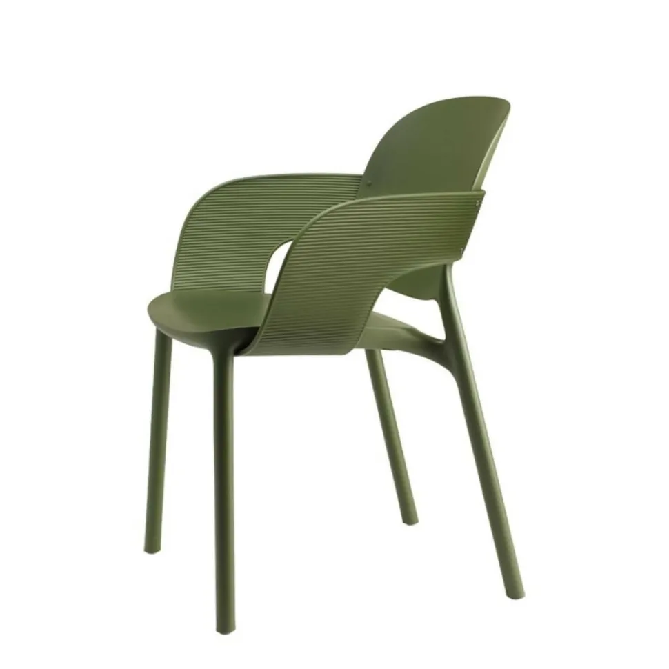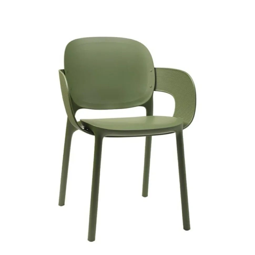 Krzesło Hug jest wykonane z certyfikowanego materiału z recyklingu Post-Consumer Recycled (PCR). Krzesło i fotel osiągają wyższy poziom etyczny i wyższą jakość, dzięki powtórnemu użyciu tworzywa sztucznego. Krzesło Hug bedzie odpowiednie zarówno do wnętrz jak i na zewnątrz. Wygodne podłokietniki krzesła dodają mu niebanalny wygląd. Podłkietniki o ciekawej teksturze dodają nie tylko komfort ale również są ozdobą.Krzesło sztapluje się (stosy do 8szt)Max obciązenie krzesła 120kgKrzesło nadaje się do użytku zewnętrznegoWymiary opakowania: 58x75x102cm Max 4 szt w kartonie