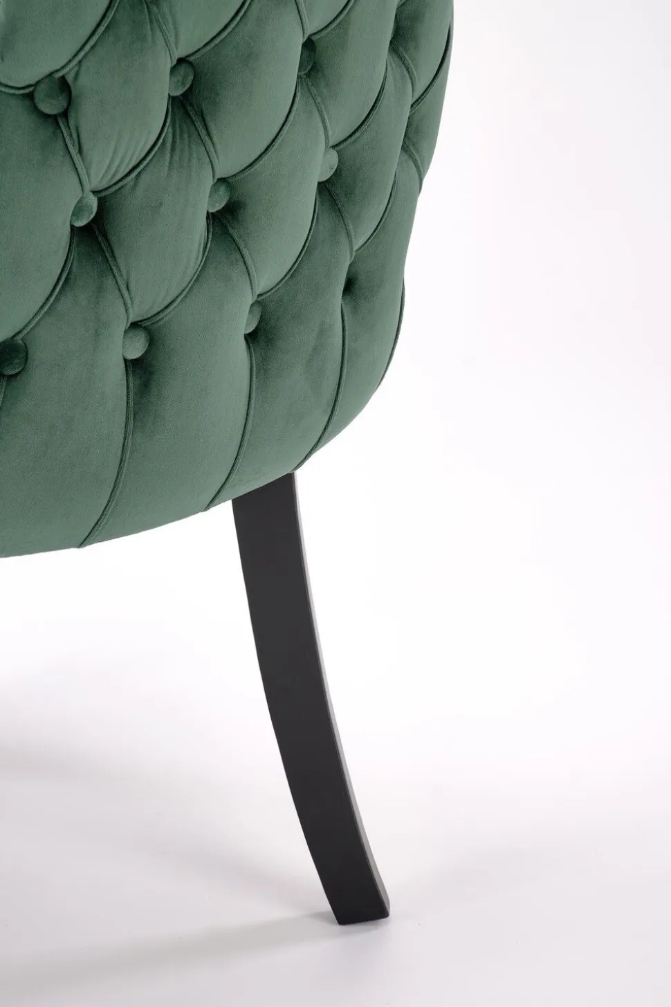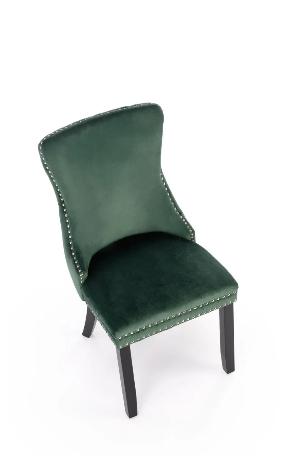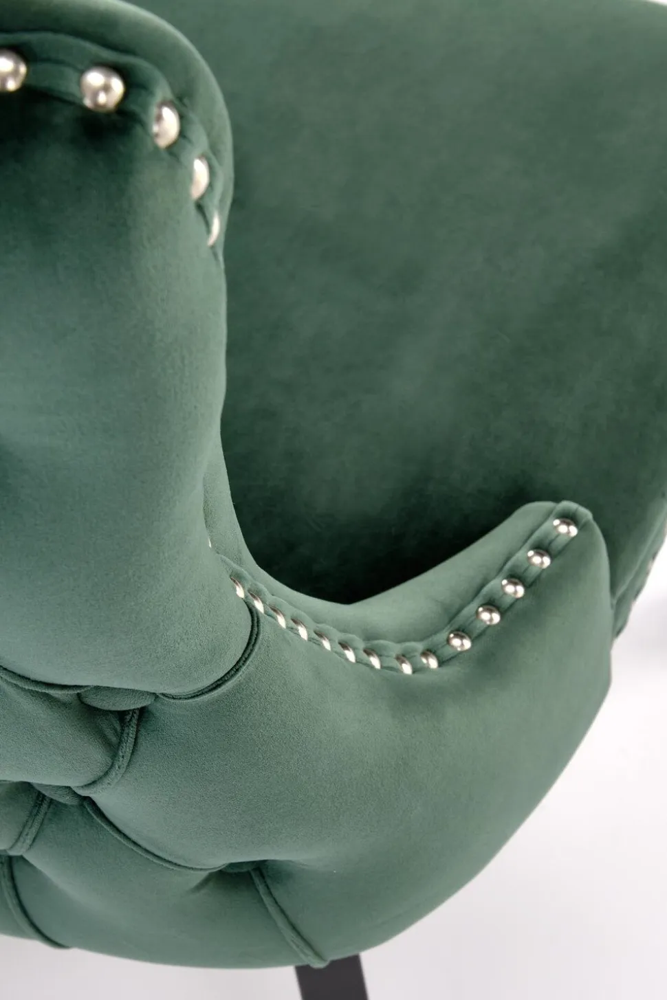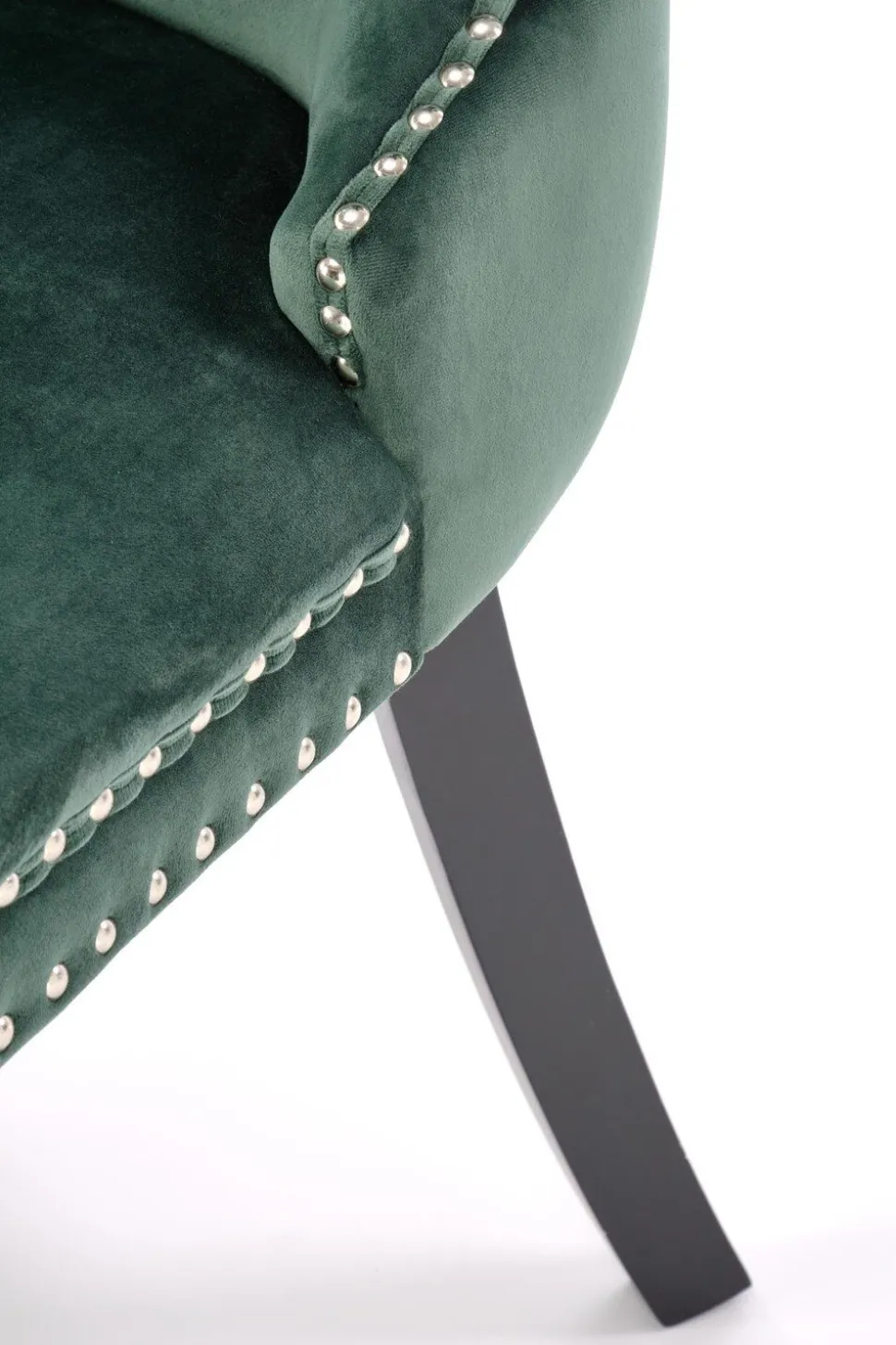 Krzesło Iridionne Velvet w ciemnym zielonym kolorze to połączenie elegancji i wygody, które z pewnością wzbogaci każde wnętrze. Wykonane z wysokiej jakości tkaniny welwet, krzesło przyciąga wzrok swoim luksusowym wyglądem oraz głębokim, ciemnym zielonym odcieniem, który dodaje przestrzeni subtelnej elegancji. Velvet jest materiałem o wyjątkowej miękkości i gładkości, co sprawia, że każde siedzenie na tym krześle jest prawdziwą przyjemnością.