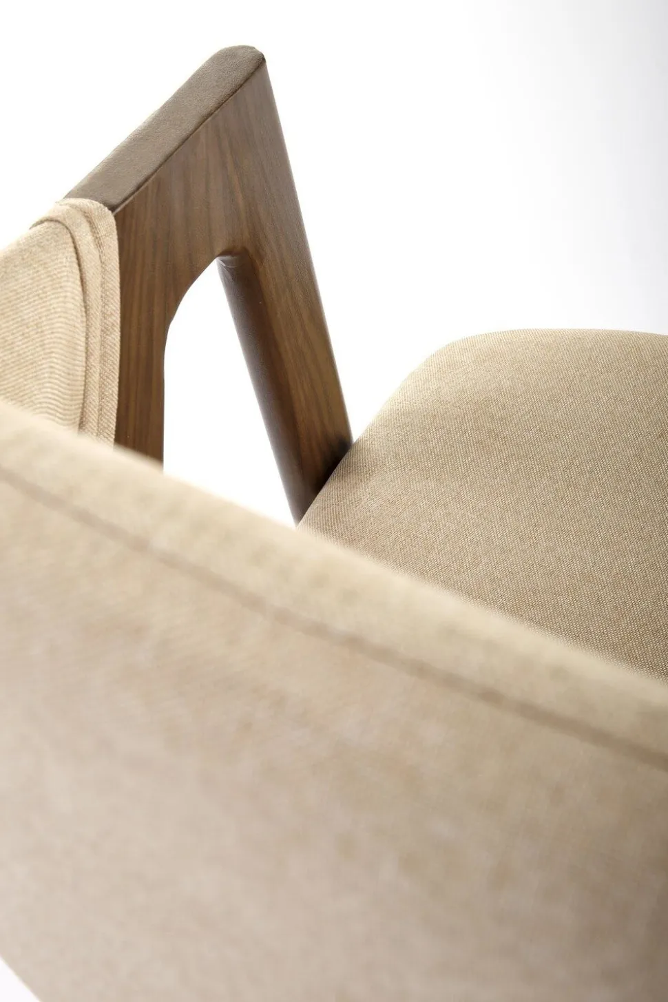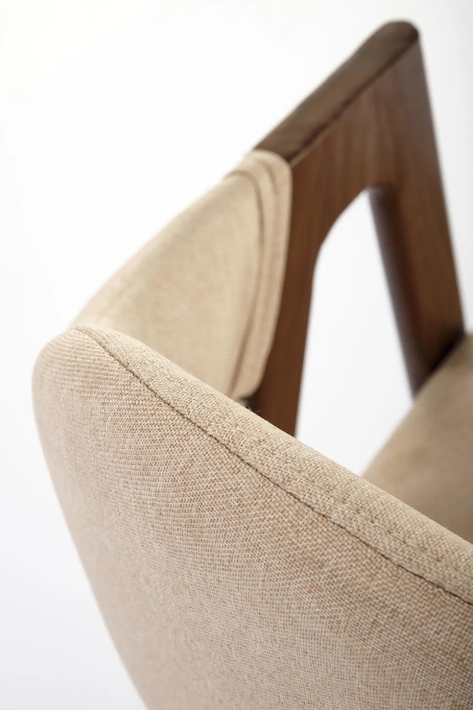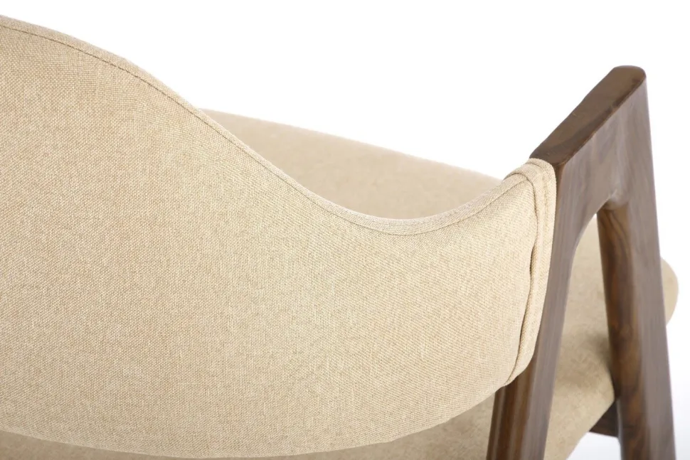 Komfortowe oparcie i siedzisko krzesła zostały obite wysokiej jakości tkaniną w przyjemnym beżowym kolorze, której tekstura dodaje krzesłu elegancji. Podstawa wykonana ze stali pomalowanej tak, aby imitowała naturalne, ciemne drewno, dodaje wnętrzu przytulności i ciepła. Krzesło Island posiada również oryginalne podłokietniki, które są przedłużeniem nóg krzesła, co tworzy unikalny efekt nowoczesnego designu.
