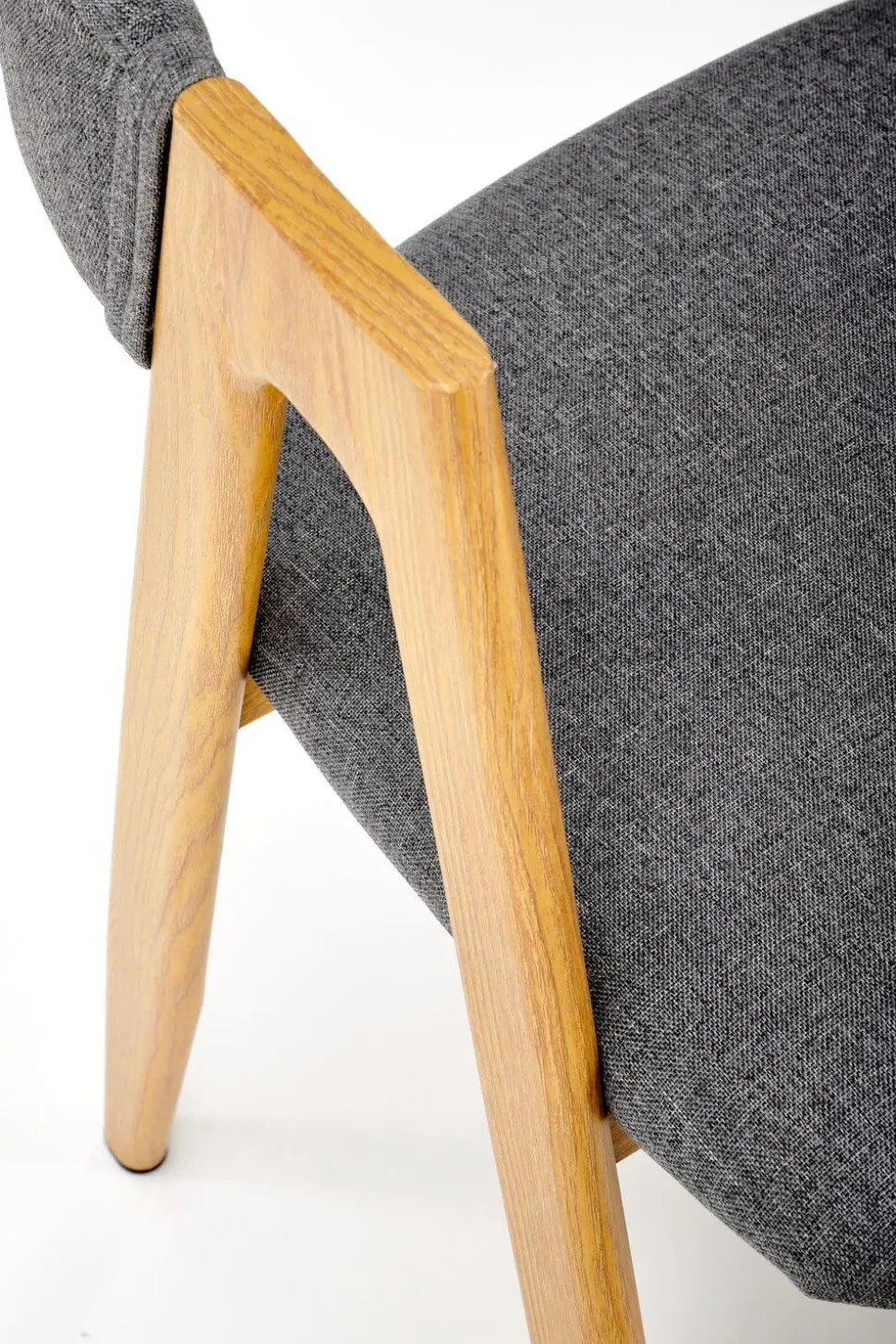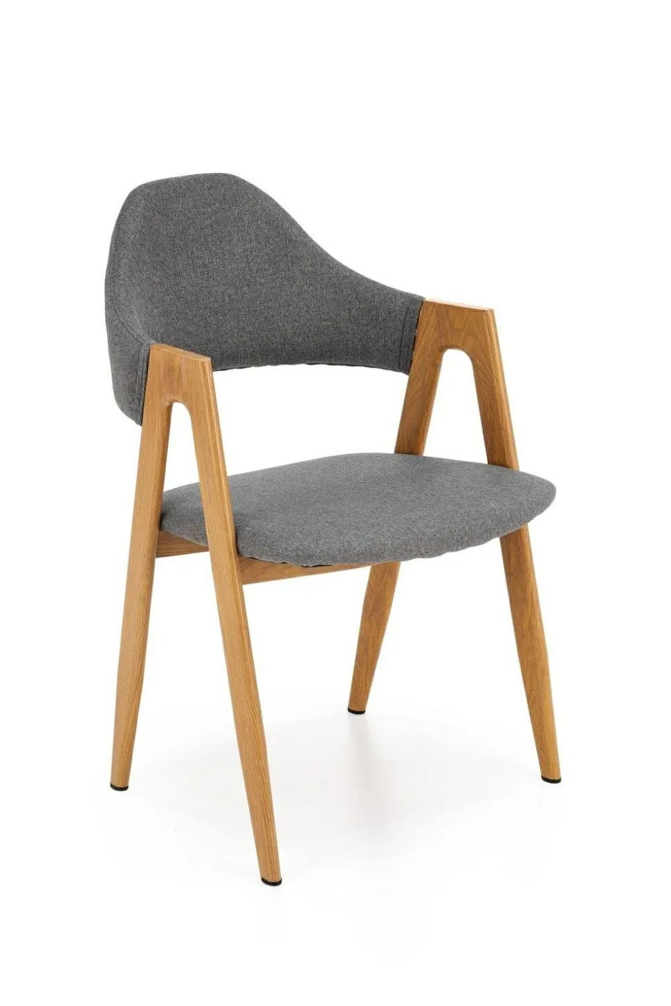 - Wygodne oparcie i siedzisko krzesła obite jest tkaniną w kolorze popielatym