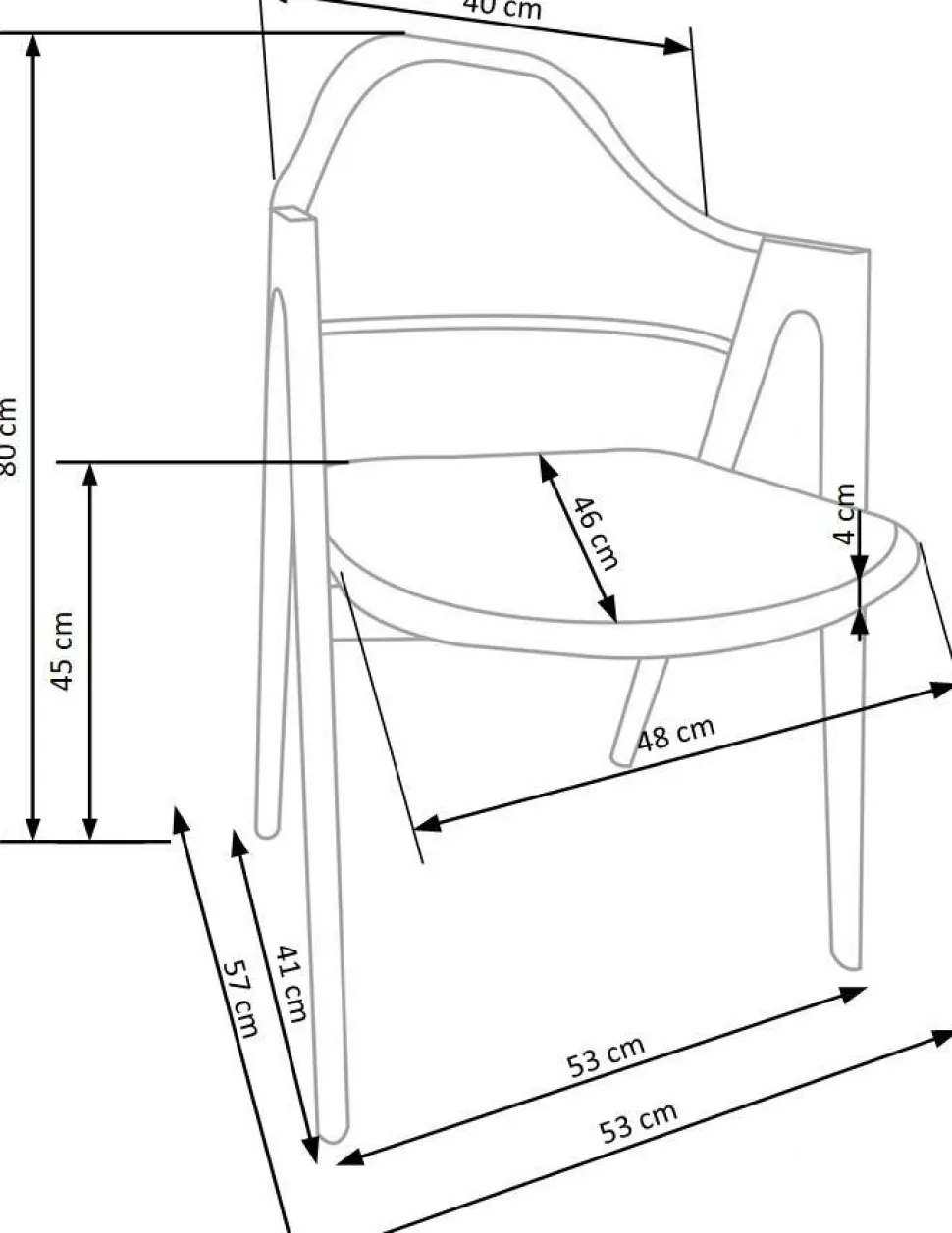- Posiada podłokietniki, które są przedłużeniem nóg krzesła, co daje ciekawy efekt nowoczesnego designu połączonego z formą krzesła w stylu retro