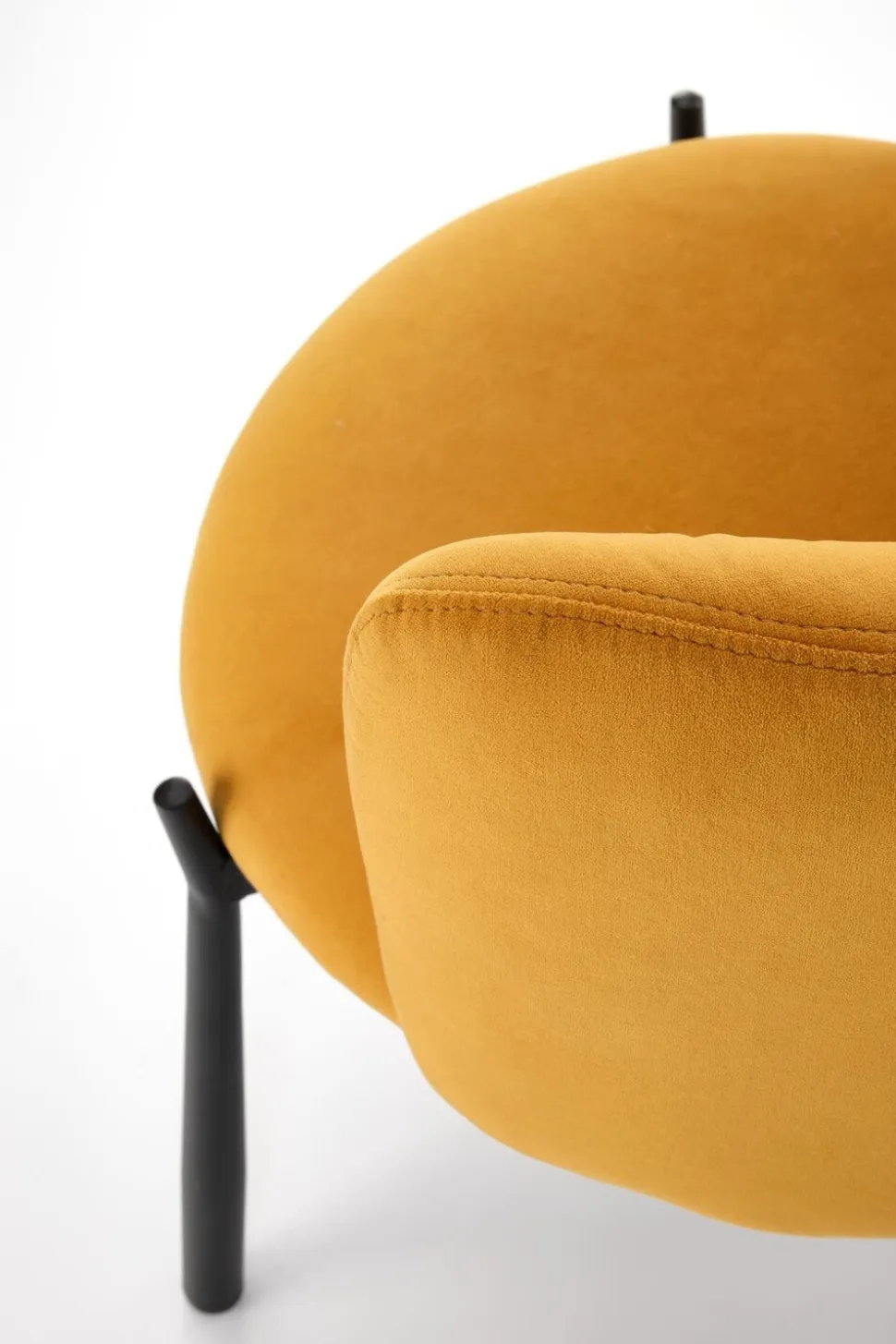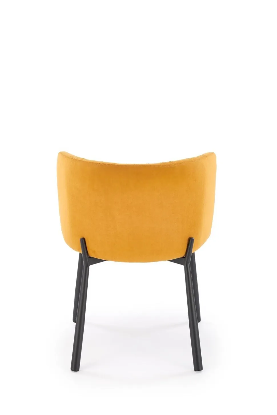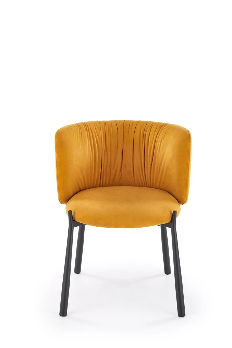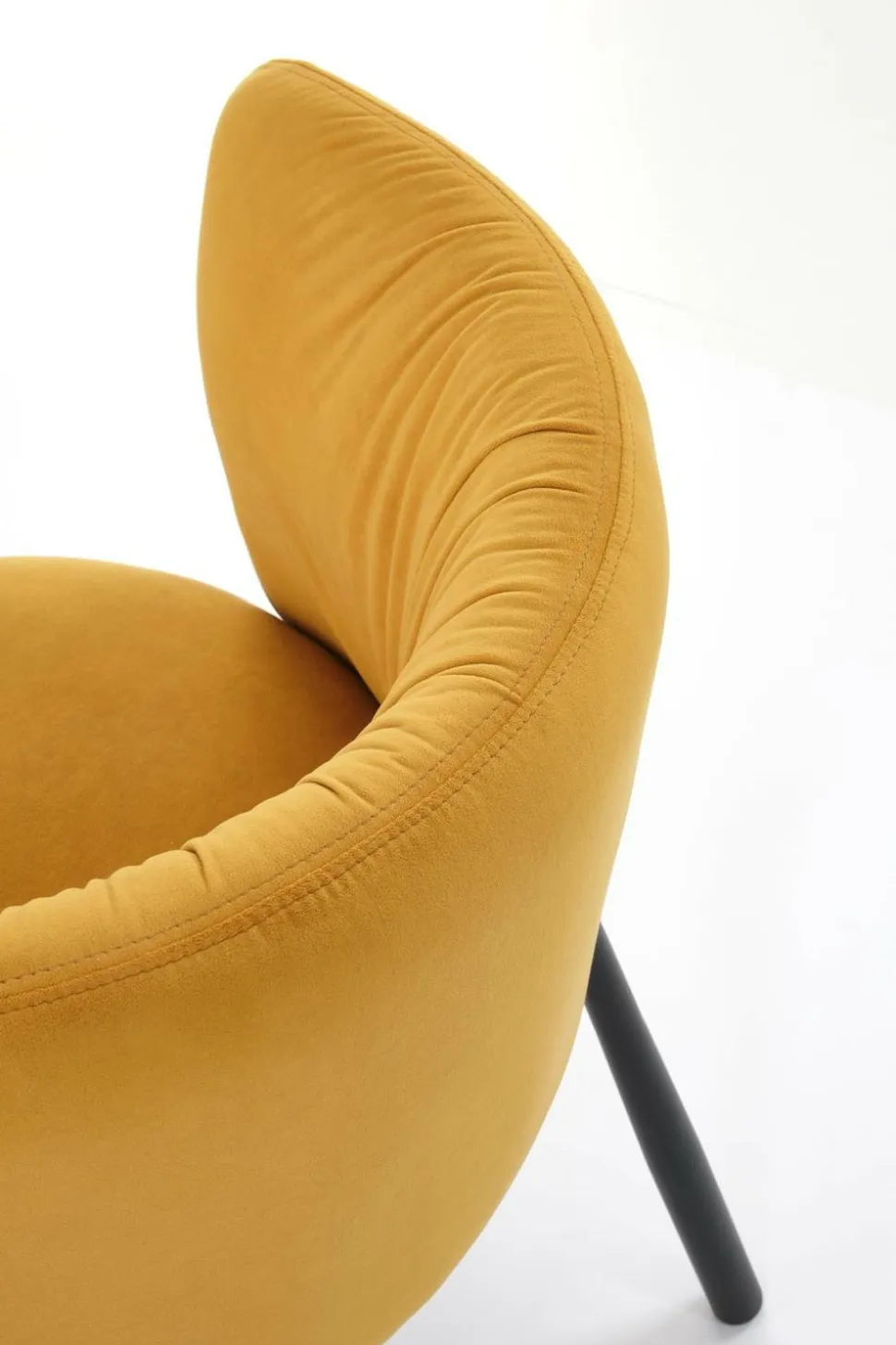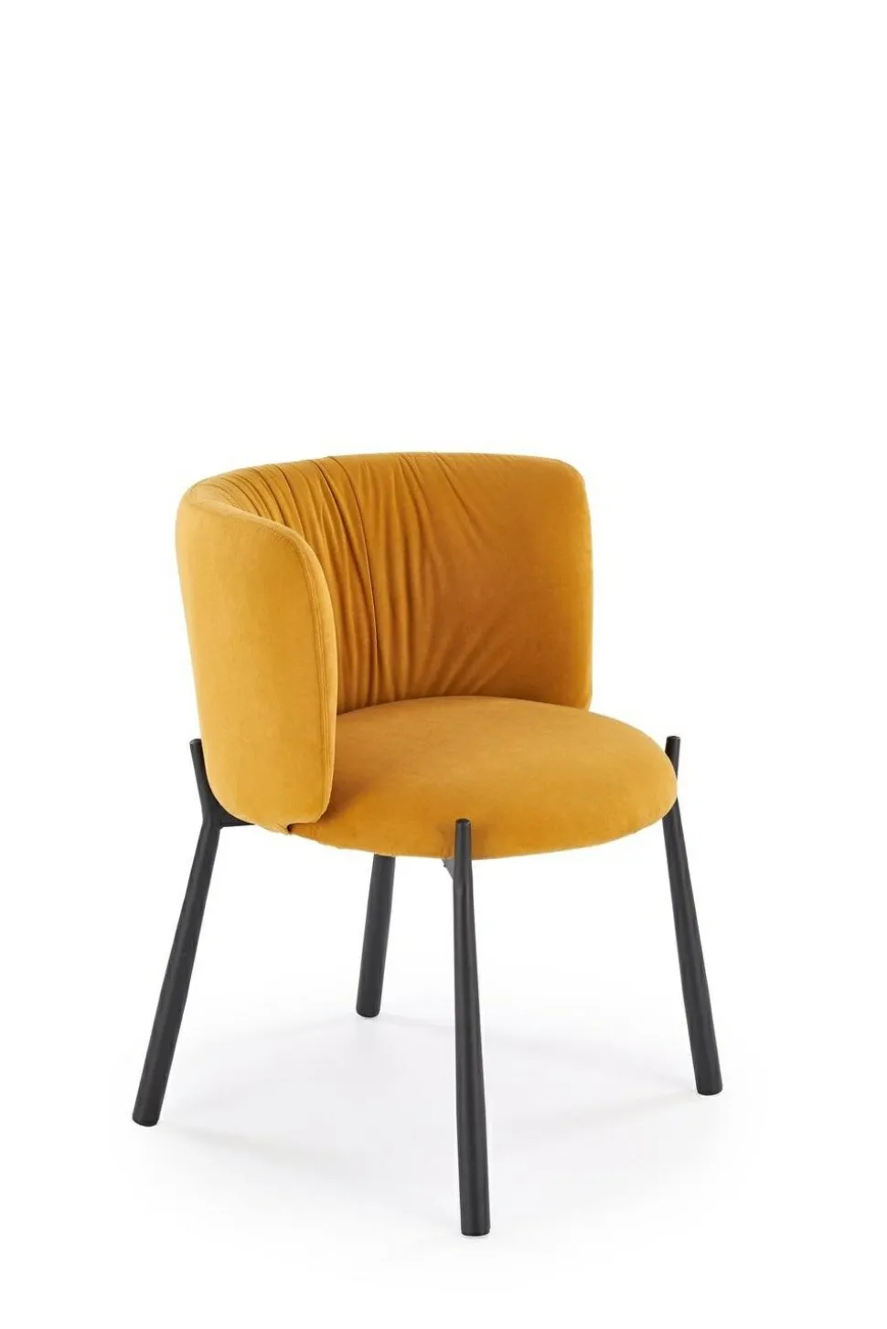 Krzesło Itzal w kolorze musztardowym łączy w sobie elegancję, komfort i funkcjonalność, co czyni je doskonałym dodatkiem do każdego nowoczesnego wnętrza. Jego wymiary, wynoszące 60 cm szerokości, 58 cm głębokości, 76 cm wysokości oraz 45 cm wysokości siedziska, zapewniają wygodę i ergonomiczne wsparcie podczas siedzenia. Krzesło Itzal wyróżnia się nowoczesnym designem, który idealnie komponuje się z różnorodnymi aranżacjami wnętrz. Musztardowy kolor tapicerki z tkaniny welwet MAVEL#28 dodaje wyrazistości i ciepła, tworząc przytulną atmosferę w pomieszczeniu.