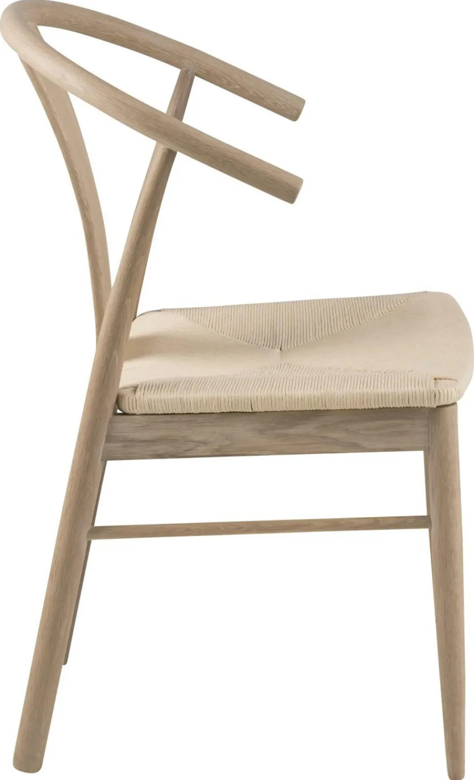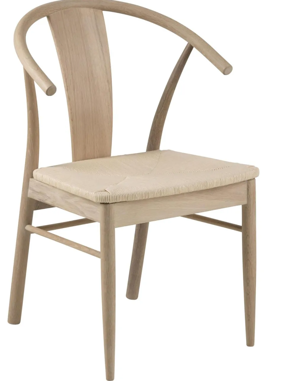 Sukces udanego projektowania mebli zapewnia wykorzystanie ponadczasowych materiałów i przemyślanej formy. Krzesło Janik duńskiej marki Actona to połączenie wszystkich najważniejszych cech, które powinno spełniać idealne krzesło. Wykonane jest z drewna dębowego w naturalnej barwie i uzupełnione w siedzisko wyplatane z papieru w tym samym odcieniu. Wyjątkowa konstrukcja krzesła, gdzie oparcie zmienia się w podłokietniki to modna i wygodna forma. Odnajdzie się przede wszystkim we wnętrzach skandynawskich, boho, a także retro i vintage. Doskonale sprawdzi się jako krzesło do salonu i jadalni oraz podkreśli charakter w artystycznej pracowni. Subtelne detale krzesła w postaci plecionki, zwężających się nóżek i giętego elementu w oparciu sprawiają, że jest ono niepowtarzalne i wyjątkowe.