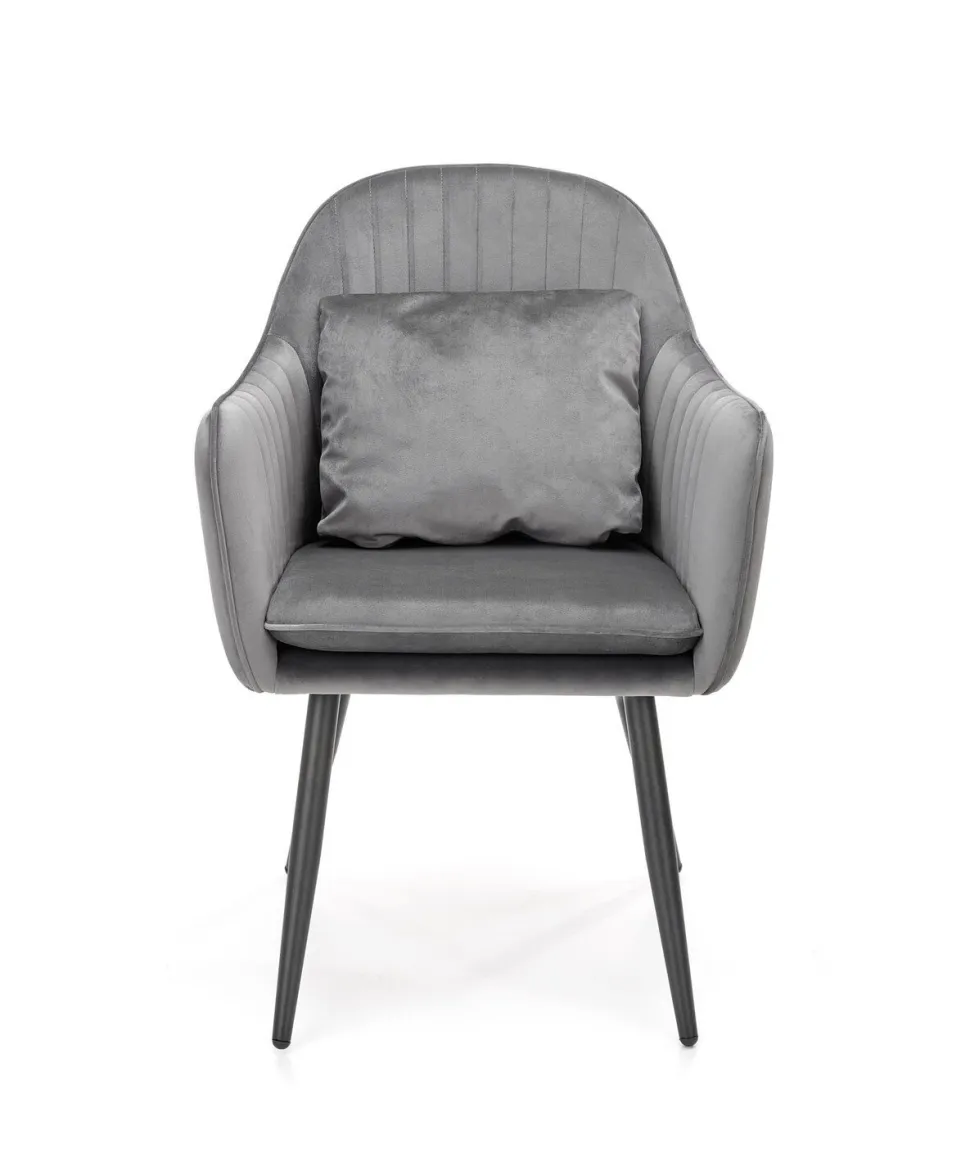 Elegancja i komfort w stylu glamour Krzesło Jovite to wyjątkowe dzieło, które łączy w sobie nowoczesny design, elegancję oraz wyjątkowy komfort użytkowania. To mebel, który spełnia zarówno funkcjonalne, jak i estetyczne oczekiwania, doskonale nadający się do jadalni, salonu czy nawet sypialni przy toaletce. Jovite cechuje się zastosowaniem materiałów najwyższej jakości. Aksamitna tkanina velvet, obita na siedzisku, jest niezwykle miękka w dotyku, co zapewnia wyjątkowy komfort. Stalowa podstawa, malowana proszkowo, gwarantuje trwałość i stabilność, dzięki smukłym, szeroko rozstawionym nogom. Dodatkowy komfort użytkowania zapewniają podłokietniki oraz poduszka umieszczona na siedzisku. Dodatkowo, oparcie krzesła zdobione jest pionowymi przeszyciami, nadając mu niepowtarzalny charakter. Dostępność w dwóch modnych kolorach pozwala dostosować krzesło do własnych preferencji i stylu wnętrza. Krzesło Jovite to nie tylko mebel, to również element dekoracyjny, który dodaje elegancji i nowoczesności każdemu pomieszczeniu. Upewnij się, że to dobry wybór! Jovite to eleganckie krzesło łączące wygodną tkaninę velvet z trwałą stalową podstawą Smukłe nogi i podłokietniki zapewniają stabilność i komfort użytkowania Pionowe przeszycia na oparciu nadają meblowi wyjątkowy charakter