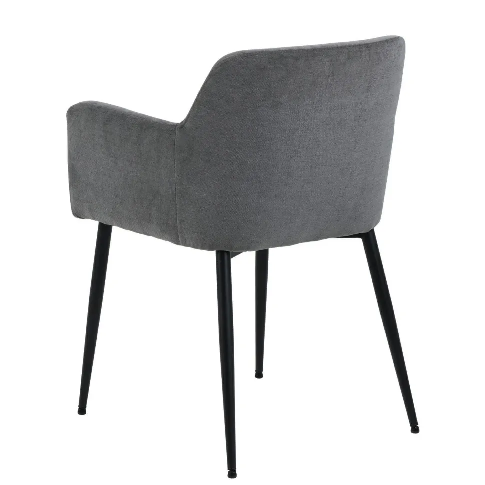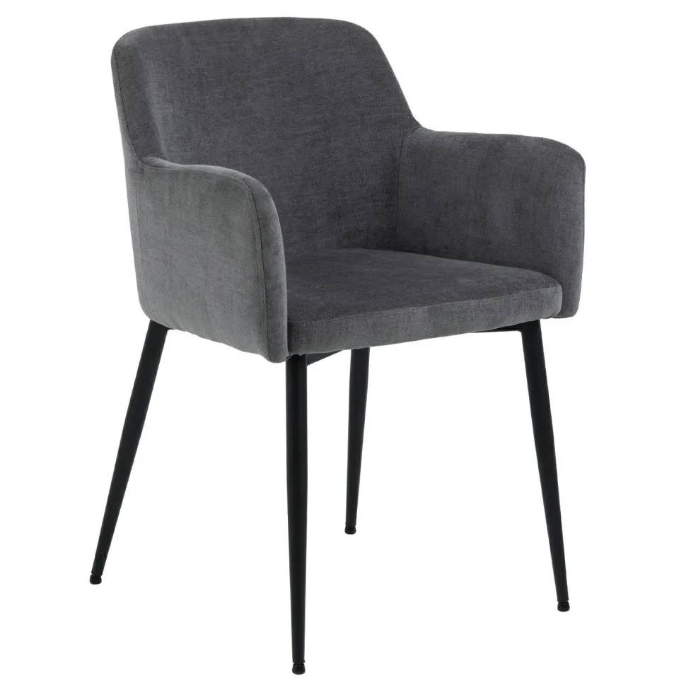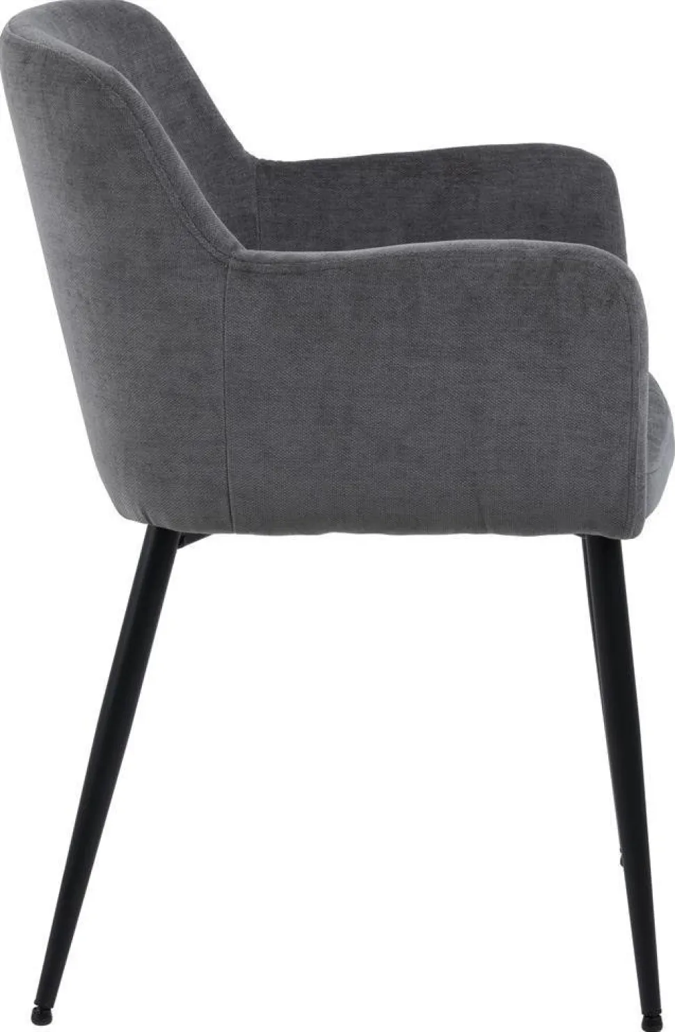 Uniwersalne krzesła do wnętrz o różnej stylizacji muszą być proste, a zarazem wygodne. Są to główne cechy Krzesła Karen, które jest idealnymmeblem do jadali, salonu, bądź sali konferencyjnej. Uwagę zwraca kubełkowa forma oparcia połączonego z podłokietnikami i siedziskiem. Wypełnienie krzesła stanowi pianka poliuretanowa, która jest bardzo sprężysta i odporna na odkształcenia. Jej powierzchnia tapicerowana jest efektowną tkaninąDanny fabric dark grey 18 o welwetowym wykończeniu. Nogi krzesła wykonane zostały z metalu malowanego proszkowo na czarno. Aby uniknąć zarysowania podłogi, nóżki od spodu zabezpieczone zostały specjalnymi nakładkami. Krzesło tapicerowane Karen to opcja dla tych, którzy szukają uniwersalnych rozwiązań w dobrym guście. Będzie świetnym krzesłem do wnętrz w każdym stylu.