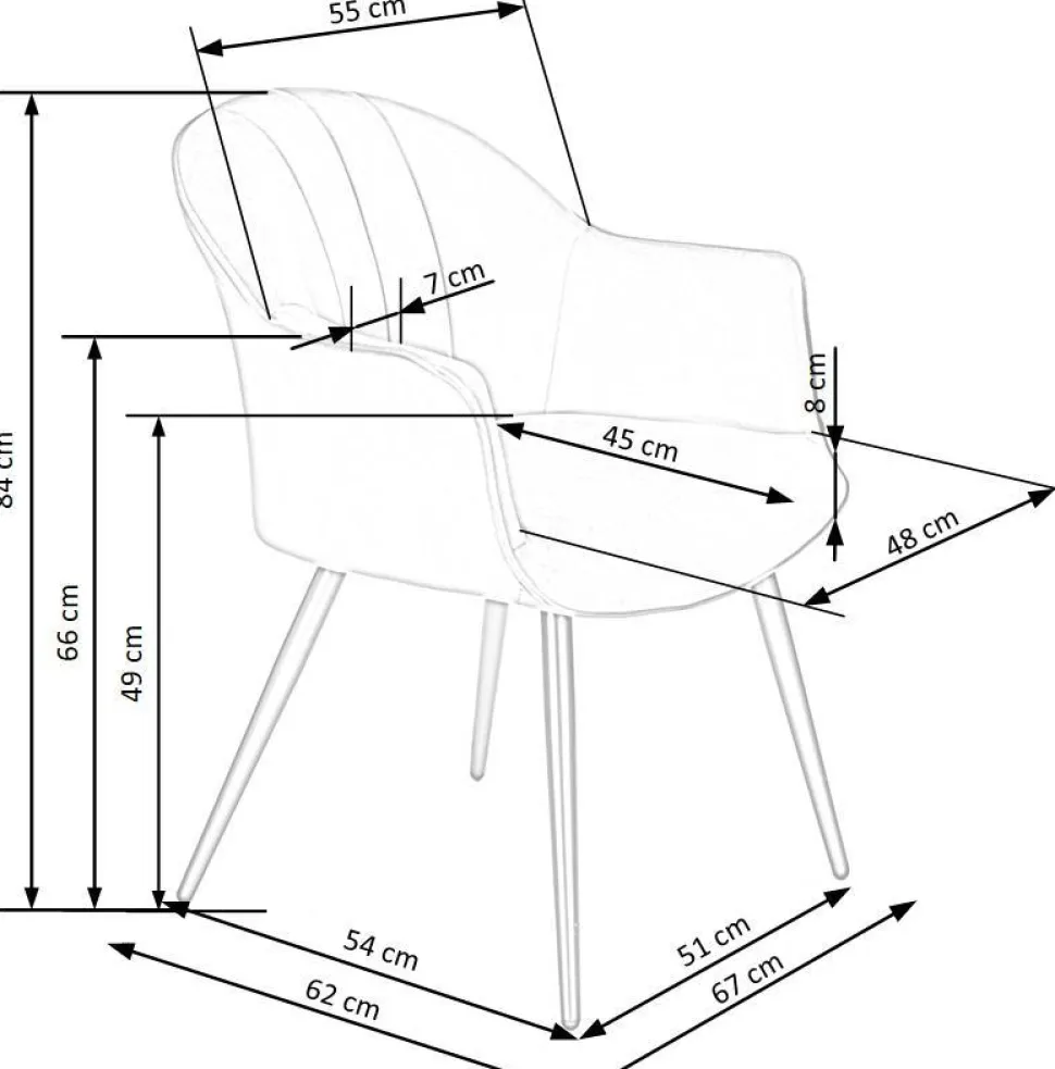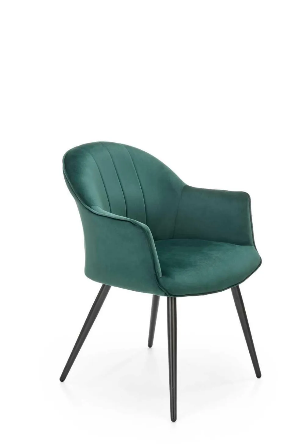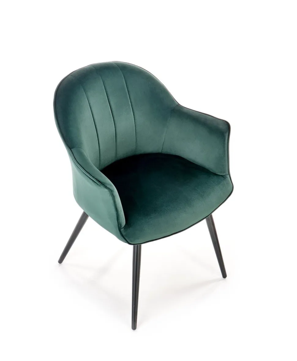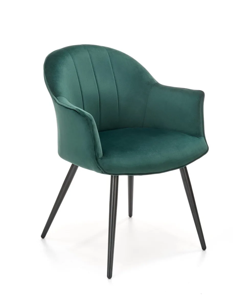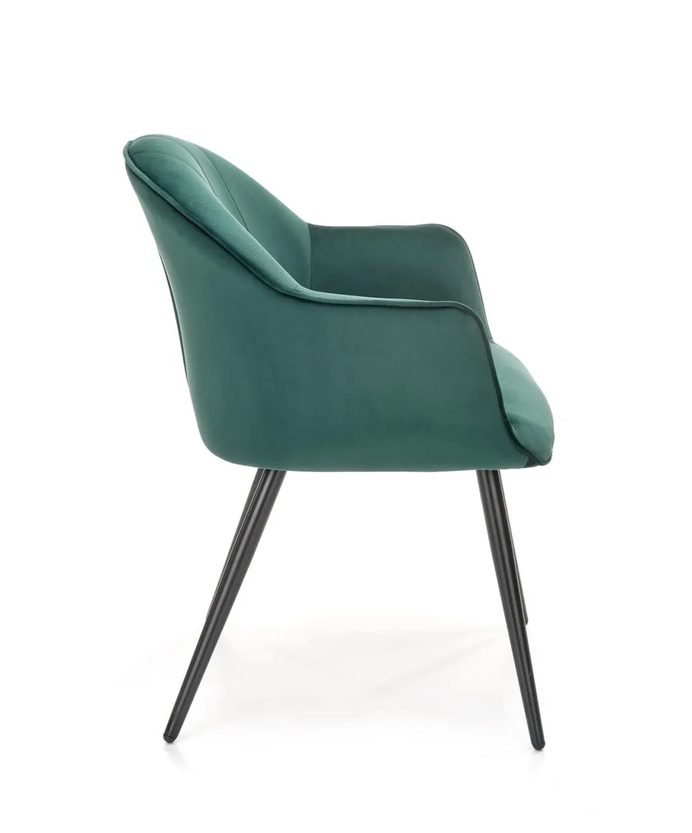 Nowoczesnośćna wysokim poziomie! Karine to krzesło, które wprowadzi nowoczesność, wygodę i elegancję do Twojego wnętrza. Wykonane z najwyższej jakości materiałów, nie tylko będzie doskonale pasować do Twojej jadalni, salonu czy sypialni przy toaletce, ale także zapewni Ci niezrównany komfort. Jego miękka i aksamitna tkanina velvet nie tylko dodaje mu elegancji, ale także jest przyjemna w dotyku, zapewniając Ci wyjątkowy komfort podczas siedzenia. Dodatkowo, podłokietniki sprawiają, że siedzenie staje się jeszcze bardziej wygodne, niezależnie od tego, czy korzystasz z krzesła przy stole w trakcie codziennych posiłków, czy też relaksujesz się, czy przygotowujesz w sypialni.Trwała konstrukcja z podstawą z malowanej proszkowo stali gwarantuje nie tylko długotrwałą użytkowanie krzesła, ale także jego stabilność. Smukłe i szeroko rozstawione nogi sprawiają, że mebel utrzymuje się pewnie na swoim miejscu, bez obaw o ewentualne przewrócenie.Oparcie krzesła zdobią pionowe przeszycia, które nadają mu niepowtarzalny wygląd. To detale, które przyciągają uwagę i dodają uroku nowoczesnemu wnętrzu. Dodatkowo, dostępny w kolorze zielonym, Karine ożywi Twoje wnętrze, dodając mu świeżości i energii. Co musisz wiedzieć przed zakupem? Nowoczesny design, który doskonale wpisuje się w nowoczesne wnętrza Wygodne siedzenie dzięki miękkiej i aksamitnej tkaninie velvet Elegancki i luksusowy wygląd, który dodaje uroku pomieszczeniu