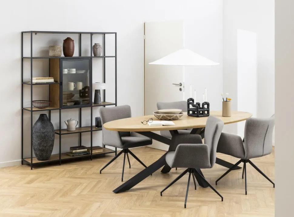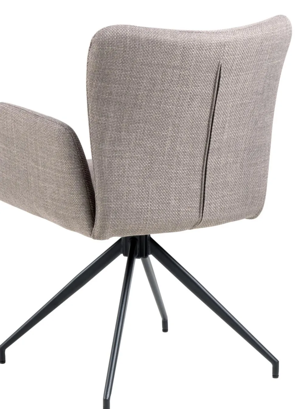 Dodatkowo krzesło wykonane jest z wytrzymałych materiałów, które nie zawiodą podczas intensywnego użytkowania. Górna część krzesła uzupełniona jest pianką poliuretanową, która zapewnia doskonałą sprężystość i wygodę przez długie godziny. Jej powierzchnię natomiast stanowi tapicerka z tkaniny Basel fabric light grey-brown 34, której klasyczny splot został estetycznie wykończony na krawędziach. Podstawę krzesła stanowią cztery nogi z metalu malowane proszkowo na kolor czarny w matowym wykończeniu. Dobór takich materiałów pozwala na piękny wygląd i łatwą pielęgnację.
