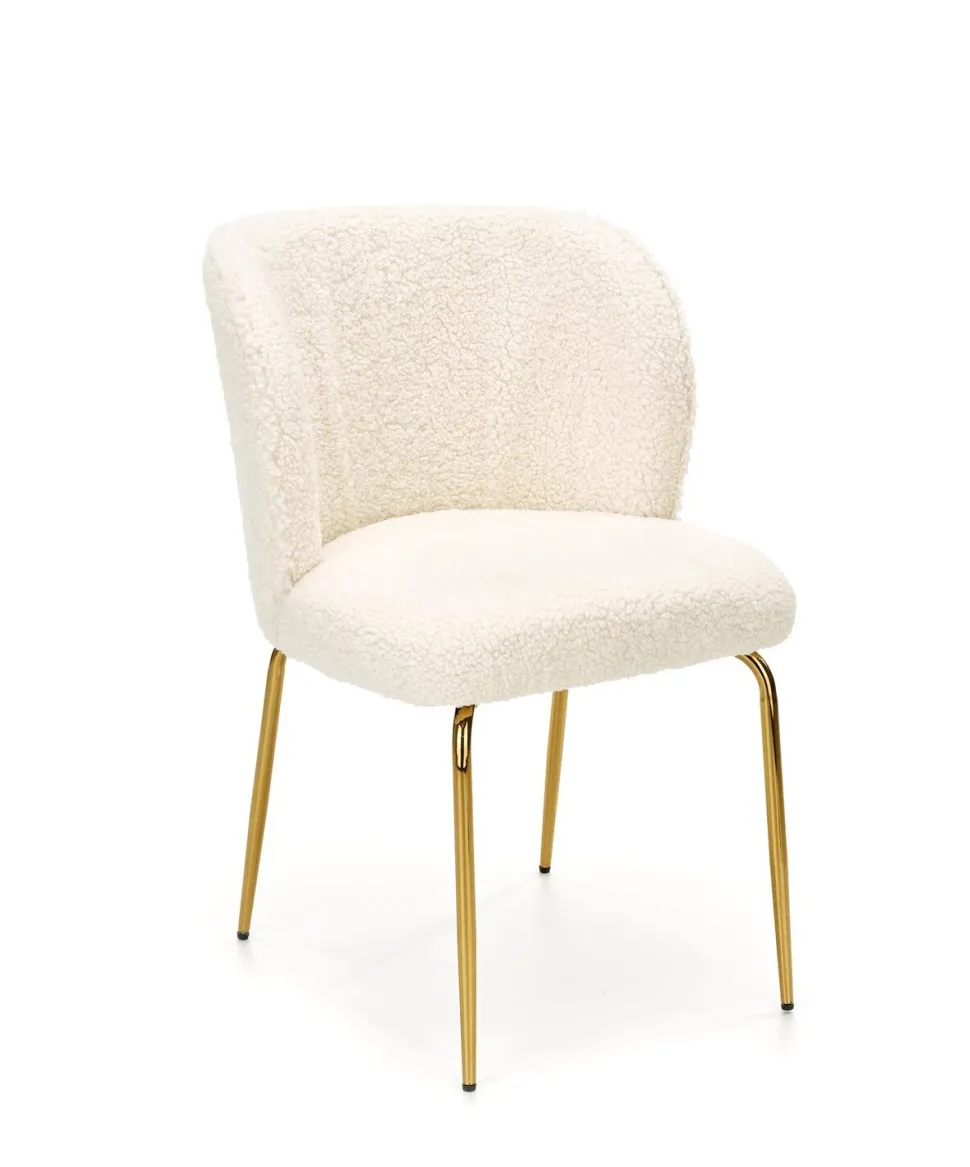 Krzesło Leonore boucle to eleganckie i stylowe rozwiązanie, które doda wyjątkowego charakteru do Twojego wnętrza. Wykonane z wysokiej jakości tkaniny bouclé w kremowym kolorze, to doskonały wybór dla osób poszukujących zarówno komfortu, jak i estetyki. Jego unikalny design jest podkreślony przez złote nogi, które nadają mu wyjątkowego blasku i elegancji. Stal chromowana, z której wykonane są nogi, zapewnia trwałość i stabilność, co gwarantuje długotrwałe użytkowanie.