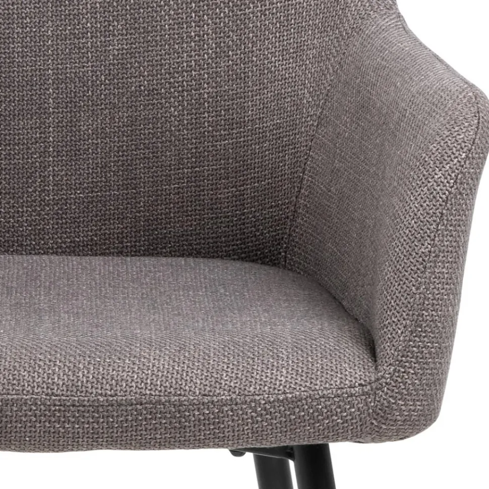 Krzesło Lizzy z podłokietnikami to idealne połączenie klasyki i nowoczesności, które świetnie sprawdzi się w jadalni, salonie czy gabinecie. Wykonane z wysokiej jakości materiałów, krzesło posiada tapicerowane siedzisko i oparcie, obite grubą tkaniną Basel w odcieniu jasnoszarego, z subtelnym efektem dwukolorowym. Tkanina ta nie tylko dodaje elegancji, ale również zapewnia trwałość i wygodę użytkowania. Na plecach oparcia znajduje się praktyczny zamek błyskawiczny, co ułatwia ewentualne zdejmowanie tapicerki do czyszczenia. Solidna, malowana proszkowo podstawa w czarnym, matowym kolorze zapewnia stabilność oraz nowoczesny, uniwersalny wygląd, który doskonale komponuje się z różnymi stylami wnętrz – od klasycznego po loftowy.