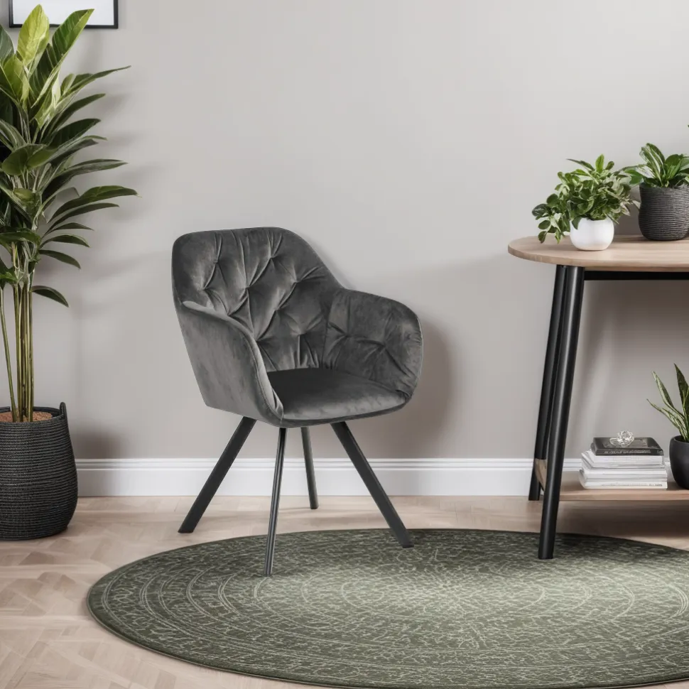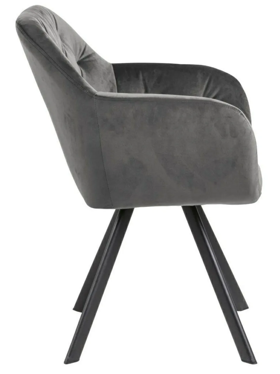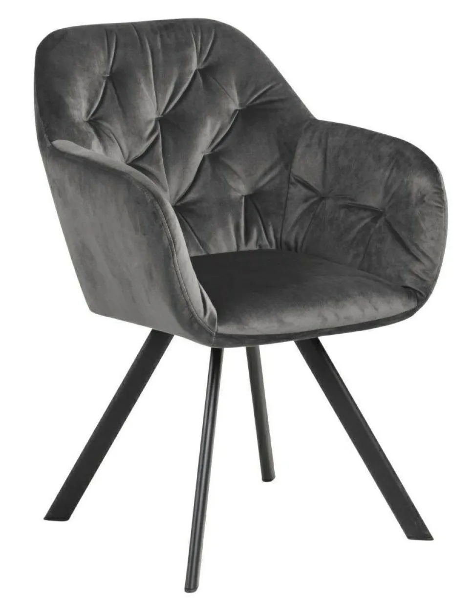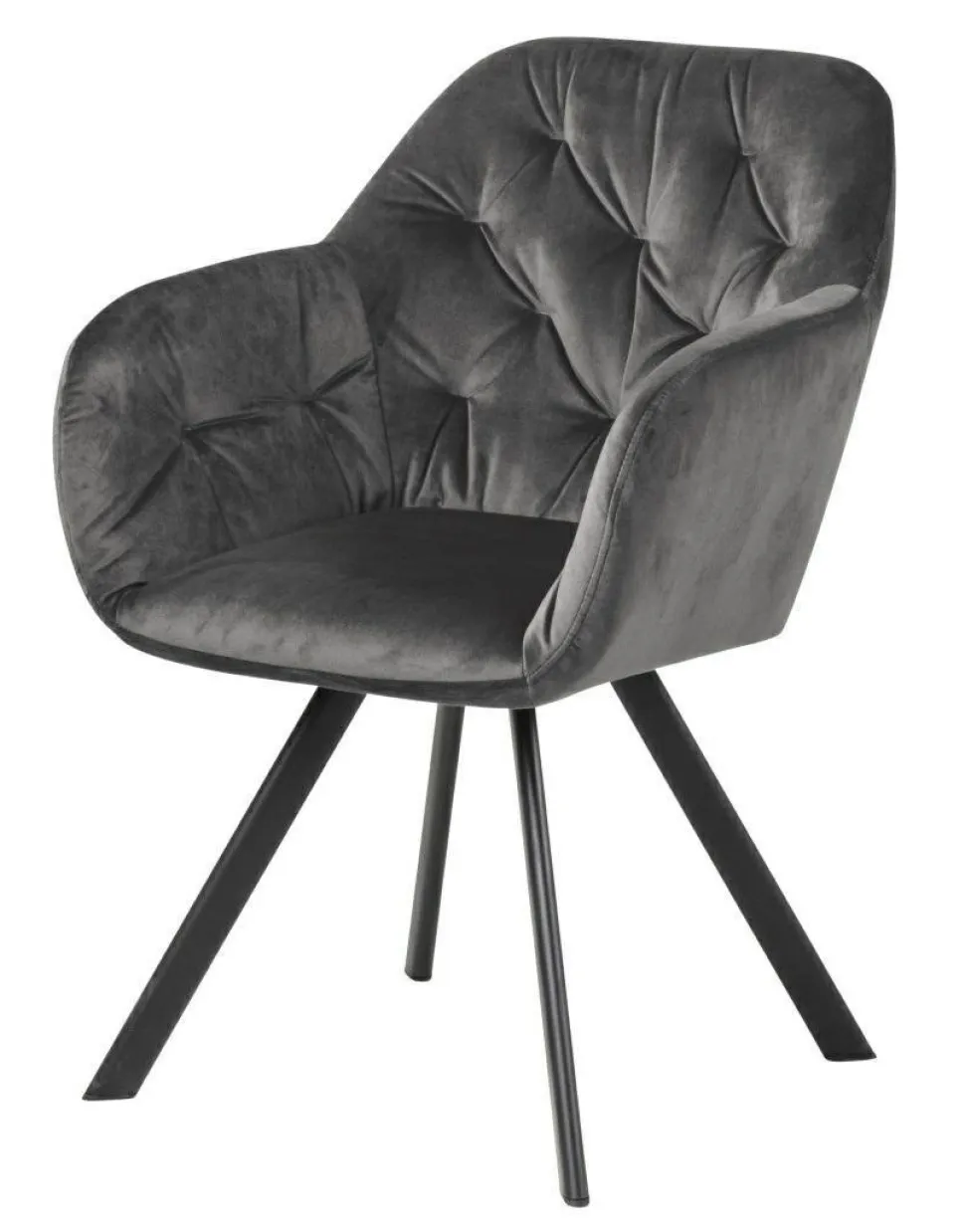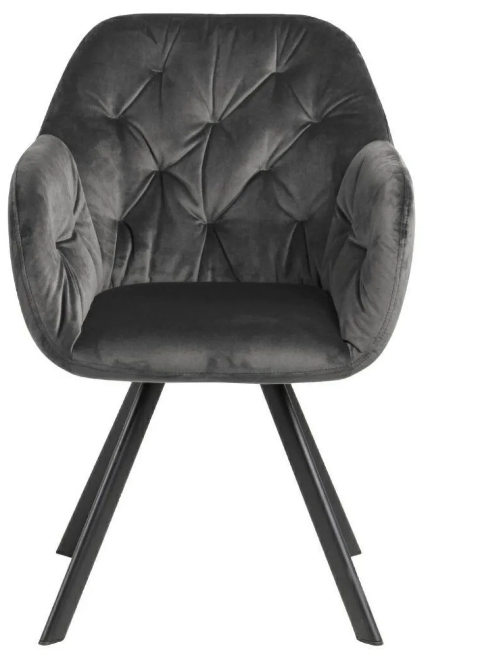 Idealne krzesła powinny zapewniać komfort, zaspokajać gusta, a także dbać o odpowiednią postawę. Wyjątkowe krzesło tapicerowane Lola łączy w sobie te cechy, które zmieniają je w model idealny. Jego podstawę stanowią lekkie w formie, jednak solidne metalowe nogi malowane proszkowo na czarno, które doskonale komponują się z miękką welwetową tkaniną VIC fabric dark grey 28. Krzesło posiada podłokietniki, które z oparciem i siedziskiem tworzą spójną całość. Na wewnętrznej stronie krzesła znajduje się pikowanie, które dodaje mu stylu.
