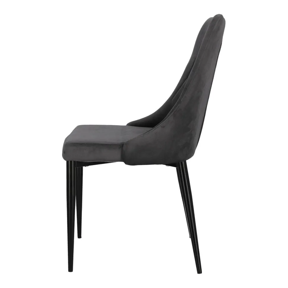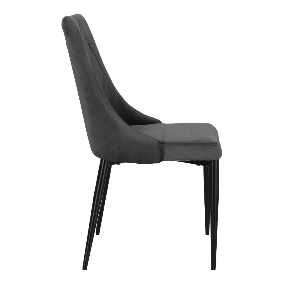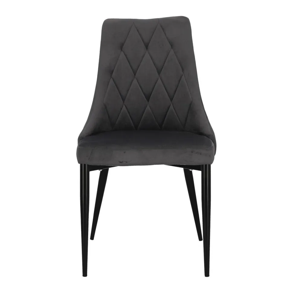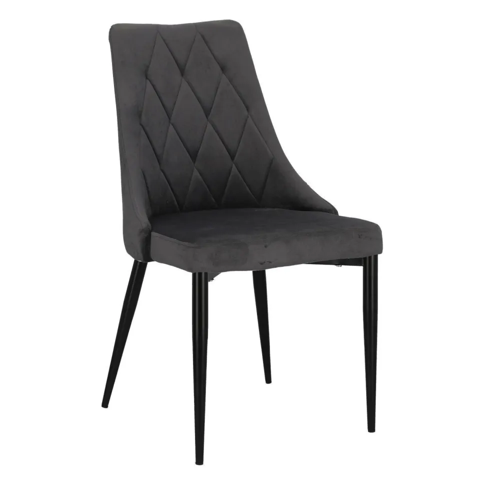 Krzesło Magnat to eleganckie siedzisko obite welwetową, miękką w dotyku tkaniną. Dodatkowo na oparciu krzesła umieszczono ozdobne pikowanie w romby. Oparcie zamontowano pod lekkim skosem, gwarantując w ten sposób niezwykły komfort użytkowania, ponieważ delikatnie zawijający się kształt idealnie dopasowuje się do naszej postawy. Podstawa krzesła to natomiast cztery metalowe nogi, malowane proszkowo i wykończone w subtelnym połysku. Stopki na końcu podstawy zabezpieczają podłogę przed zarysowaniem. Stylistyka krzesła Magnat sprawdzi się we wnętrzach urządzonych w stylu glamour i nowoczesnym. To świetna propozycja krzesła do jadalni lub sypialni. Elegancka forma tego welwetowego siedziska skomponuje się pięknie z drewnianymi, jednolitymi meblami. Krzesło dostępne jest w trzech wariantach kolorystycznych.