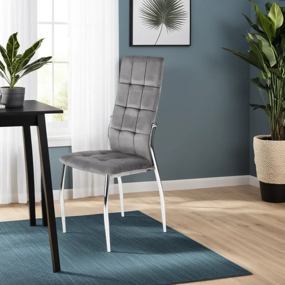 Wyjątkowe krzesło w minimalistycznym wydaniu Zdobądź stylowe i wyrafinowane krzesło Melani od Intesi. Wykonane z aksamitnej tkaniny i malowanej proszkowo stali, krzesło to z pewnością doda elegancji każdemu pomieszczeniu. Dzięki maksymalnemu obciążeniu 120 kg jest idealne do odpoczynku bez zmartwień. Krzesło Melani to idealny wybór dla każdego, kto chce wnieść odrobinę luksusu do swojej przestrzeni życiowej. Nowoczesny mebel jest fachowo wykonany, z solidną, malowaną proszkowo stalową ramą i wyściełanym, aksamitnym pokryciem zapewniającym najwyższy komfort. Krzesło o wymiarach 43/54/101 cm jest równie stylowe, co praktyczne, dzięki czemu nadaje się zarówno do domu, jak i biura. Krzesło Melani jest również w stanie sprostać rygorom codziennego użytkowania, z maksymalnym obciążeniem 120 kg. Krzesło nie zajmuje zbyt wiele miejsca i jest łatwe w transporcie i montażu.Dla tych, którzy chcą dodać odrobinę wyrafinowania do swojego wnętrza, krzesło Melani jest świetną opcją. Połączenie wygody i stylu sprawia, że jest to idealny wybór do każdego salonu, biura lub pokoju dziennego. O tym warto pamiętać! Wykorzystanie luksusowych materiałów zapewniających komfort i styl Wytrzymała konstrukcja o nośności 120 kg Lekkie, kompaktowe wykonanie dla efektywnego przechowywania