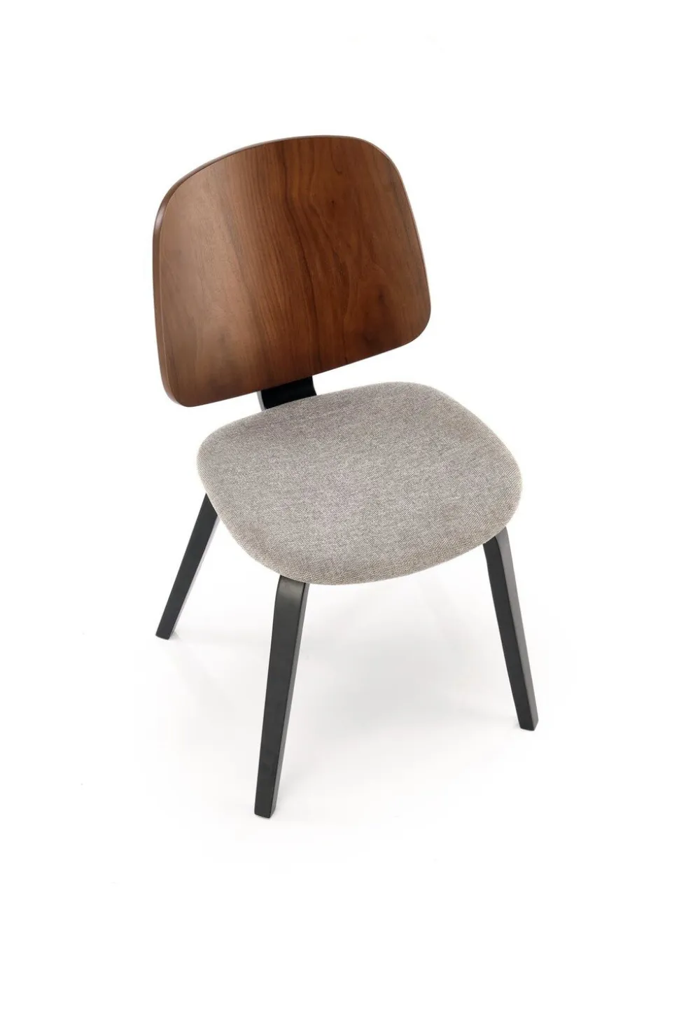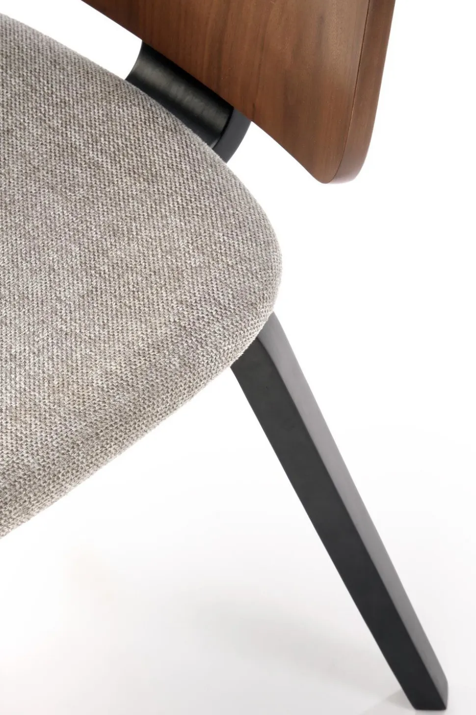 - Połączenie orzechowego drewna litego z popielatym odcieniem tkaniny nadaje krzesłu wyjątkowy i nowoczesny wygląd