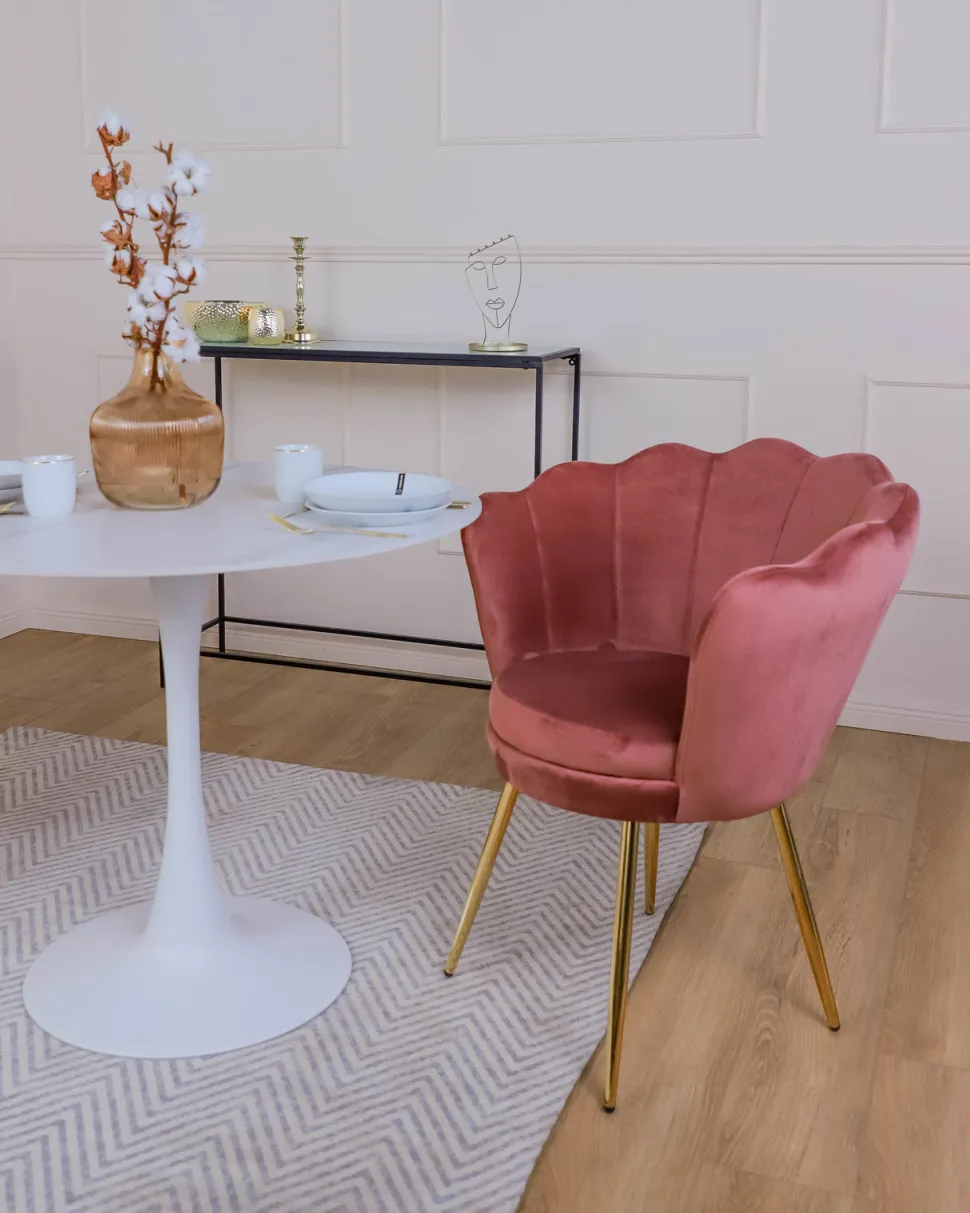 Krzesło muszelka Fiona wkomponuje się jako siedzisko przy toaletce w stylu glamour. Mebel może być również dodatkowym siedziskiem w salonie lub jadalni. Ma bardzo uroczy design, dlatego bardzo szybko wpada w oko gościom. A zarazem jest niezwykle luksusowym produktem. Niesamowity komfort podczas siedzenia na Krześle Fiona sprawi, że już nigdy nie będziesz chciał go zamienić na inny mebel.