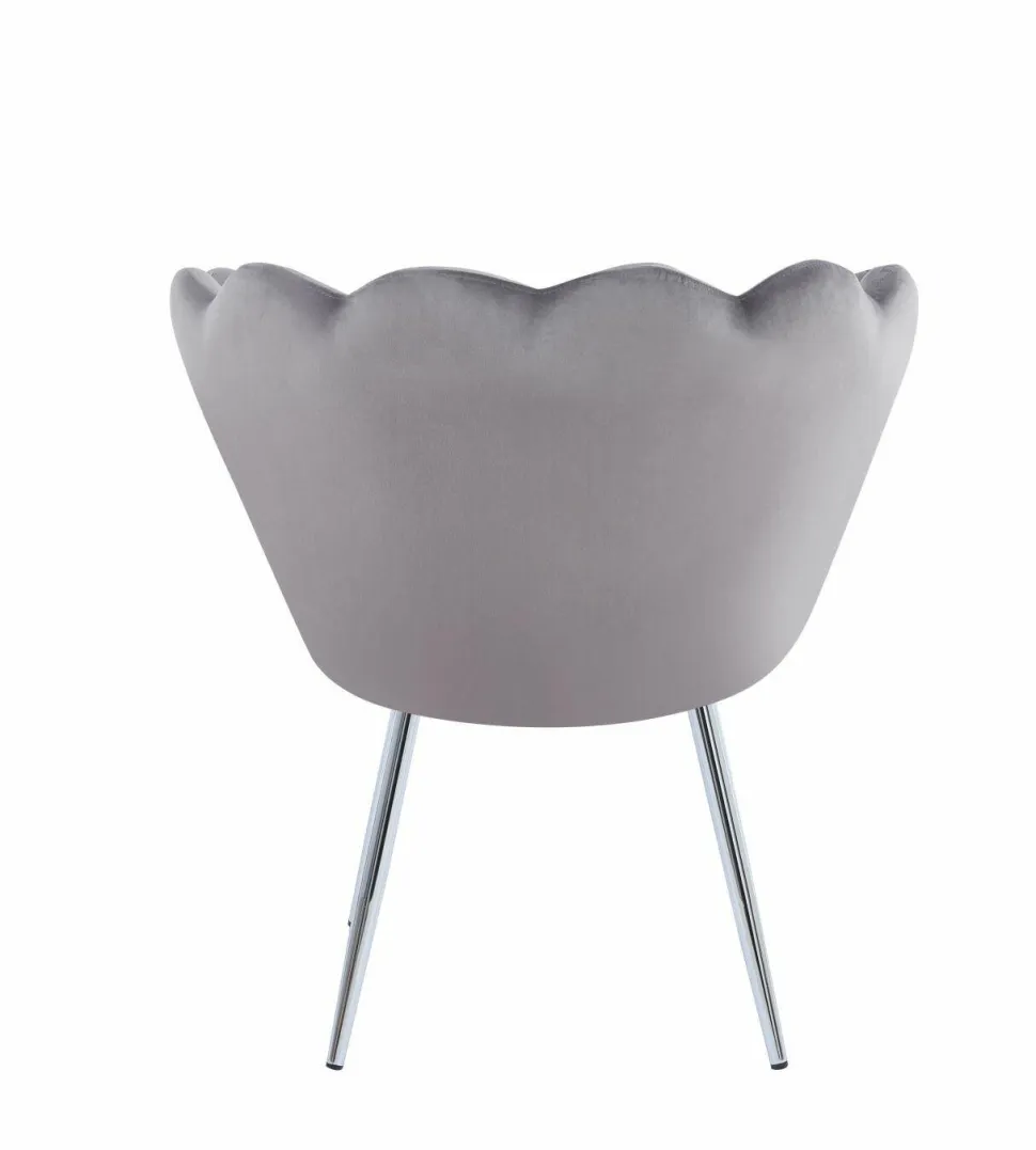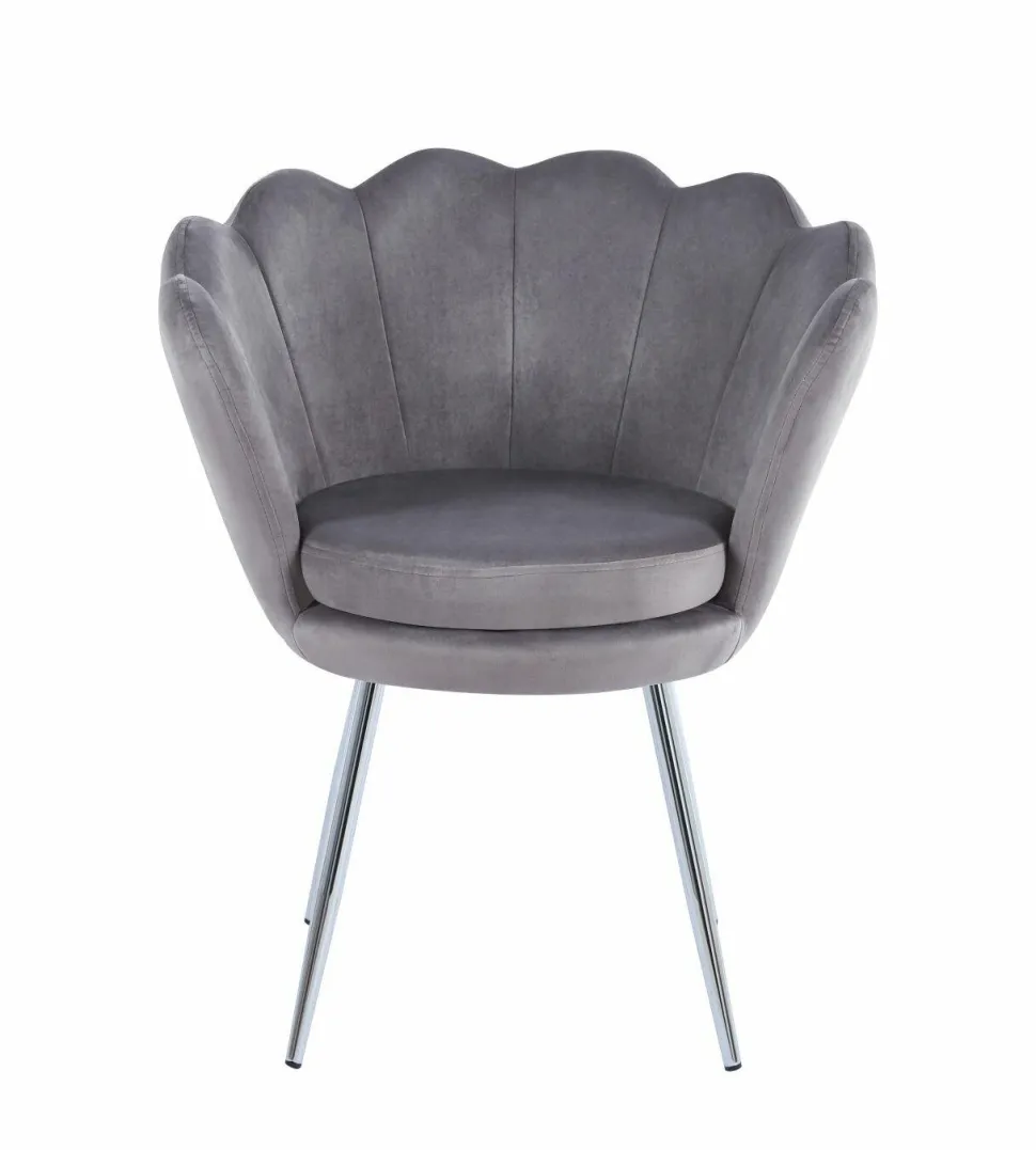 Krzesło muszelka Fiona VIC w kolorze szarym to nie tylko elegancki dodatek do każdego wnętrza, ale także praktyczne i wygodne siedzisko. Dzięki swojemu ergonomicznemu kształtowi oraz miękkiej tapicerce z weluru zapewnia komfort podczas długich godzin siedzenia. Solidne nogi w kolorze srebrnym zapewniają stabilność i trwałość, jednocześnie dodając subtelny akcent designerski do całości.